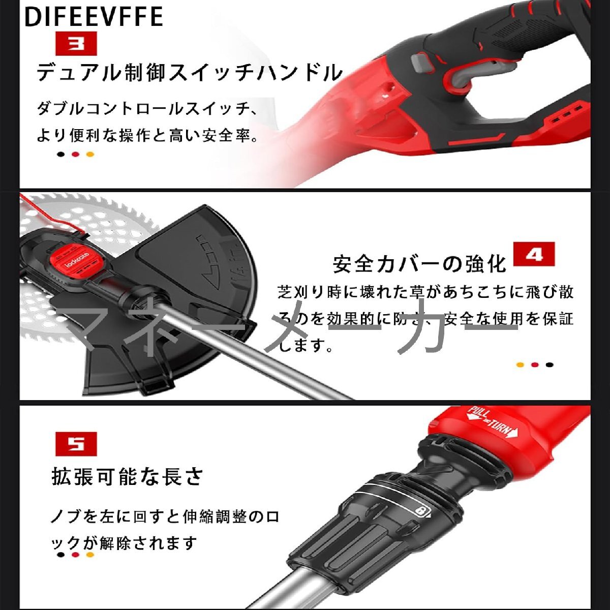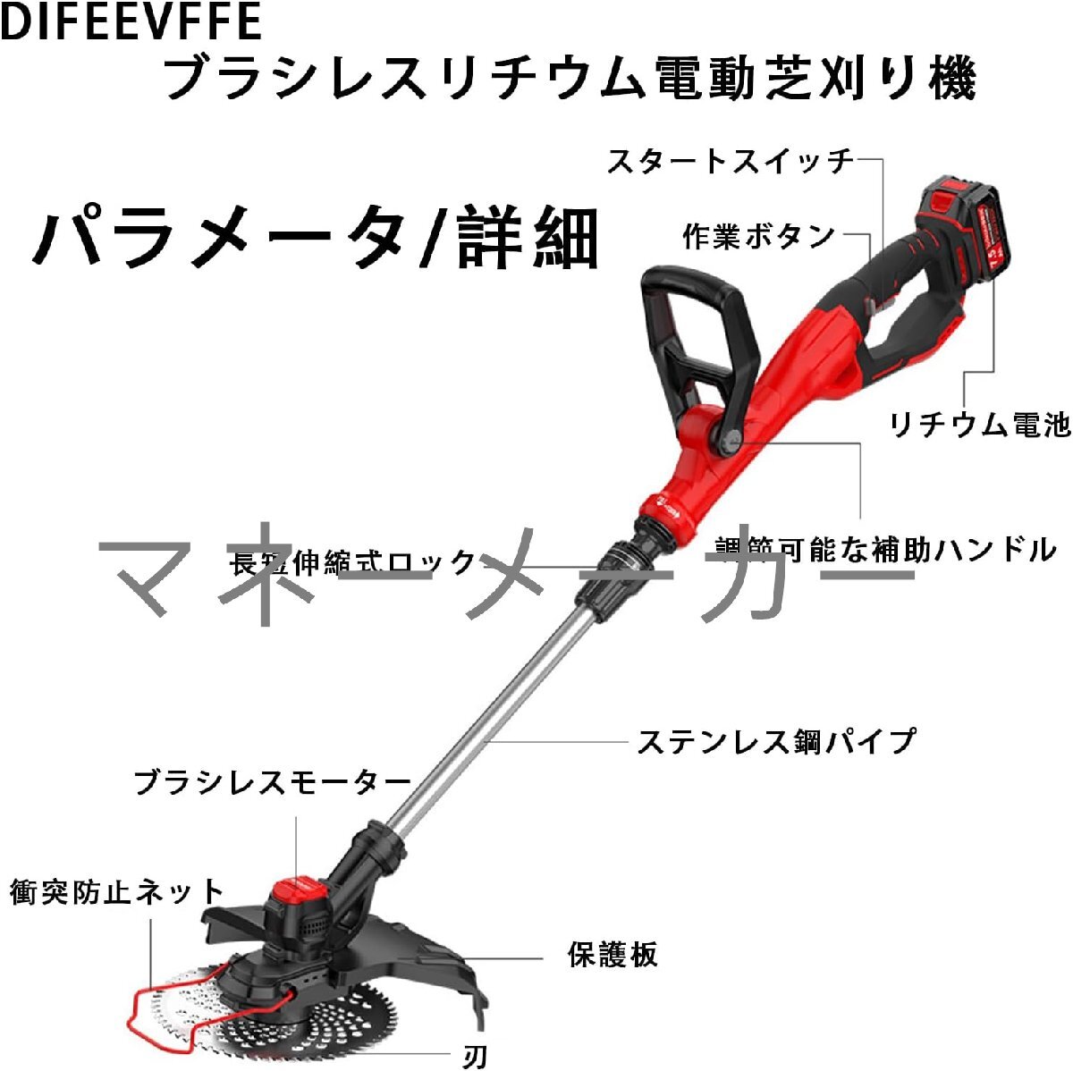 【草刈機2種類のブレード】2種類の異なるタイプのブレードを備えた電動コードレス除草器。1機多用:プラスチック刃は柔らかく柔らかい芝生の草刈りに適している、ステンレス鋼の金属刃は雑草、小低木の剪定に適している、60歯合金鋸刃は、厚い低木、木の枝、苗木を切断するのに適しています。(刃が壊れないように、除草時に正しい刃を選んでください。)