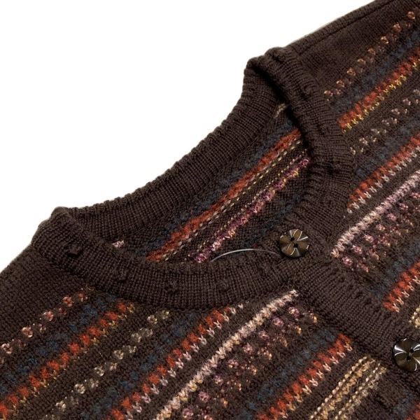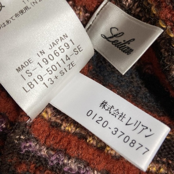 レリアン Leilian カーディガン サイズ13+ S - ダークブラウン×レッド×マルチ レディース 長袖 トップス
