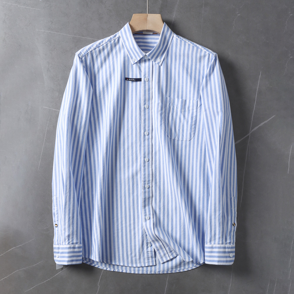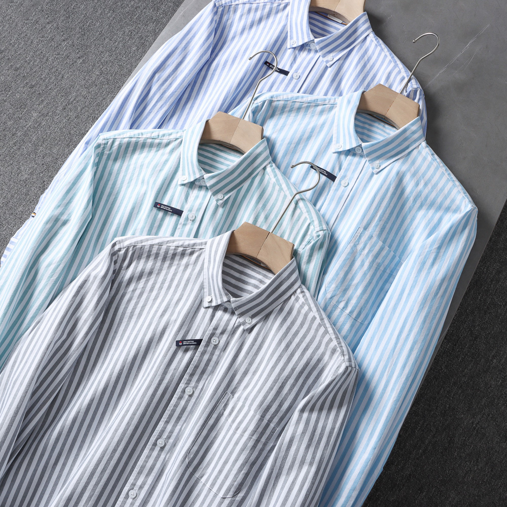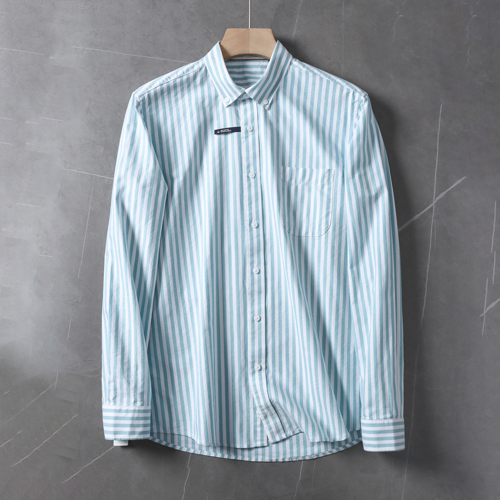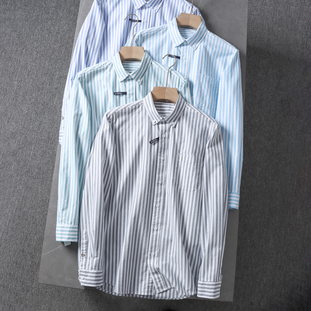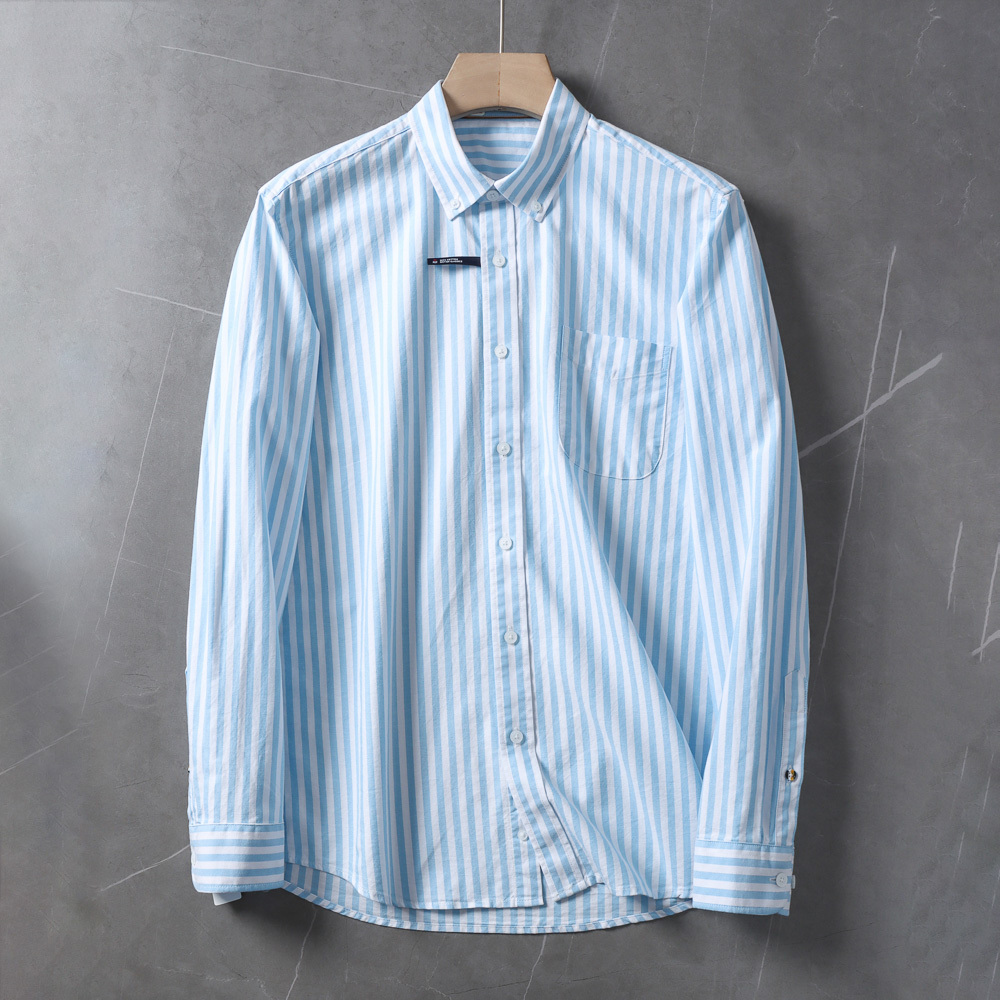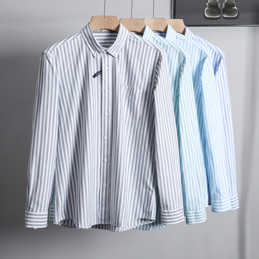 人気品4XL青色 ノーアイロンコットン新品 メンズ 綿100% ストライプ 長袖シャツ 快適 吸湿速乾 細身 春秋 ビジネス カジュアル トップス