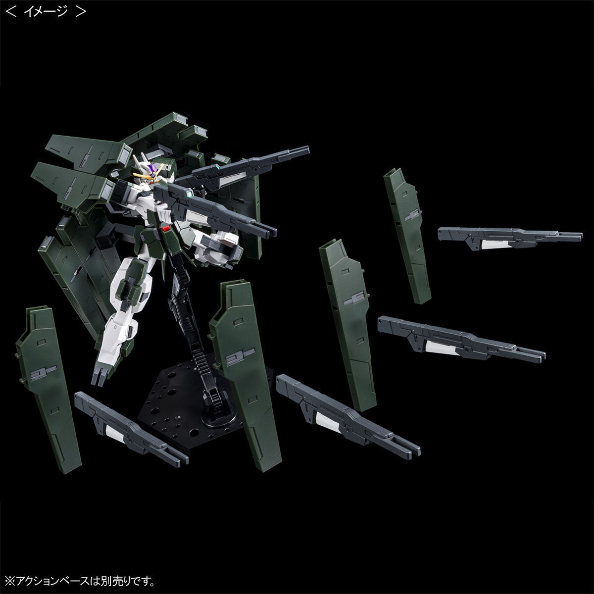 増設されたGNホルスタービットを装備するバックパック及びアーム、GNライフルビットIIを新規造形で再現。