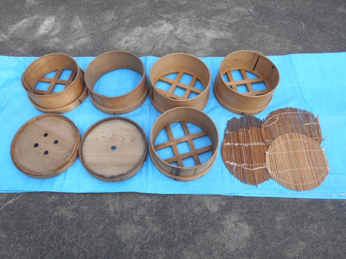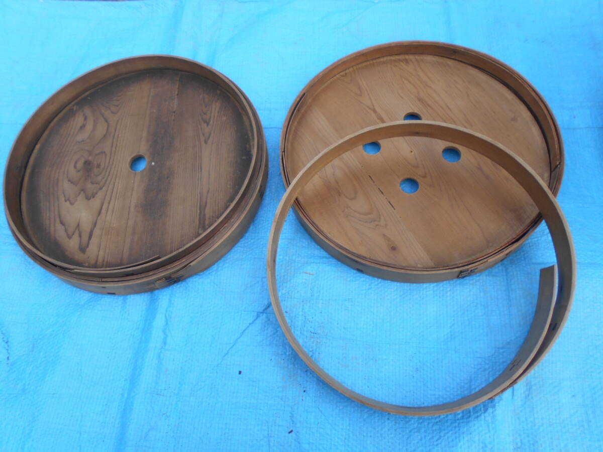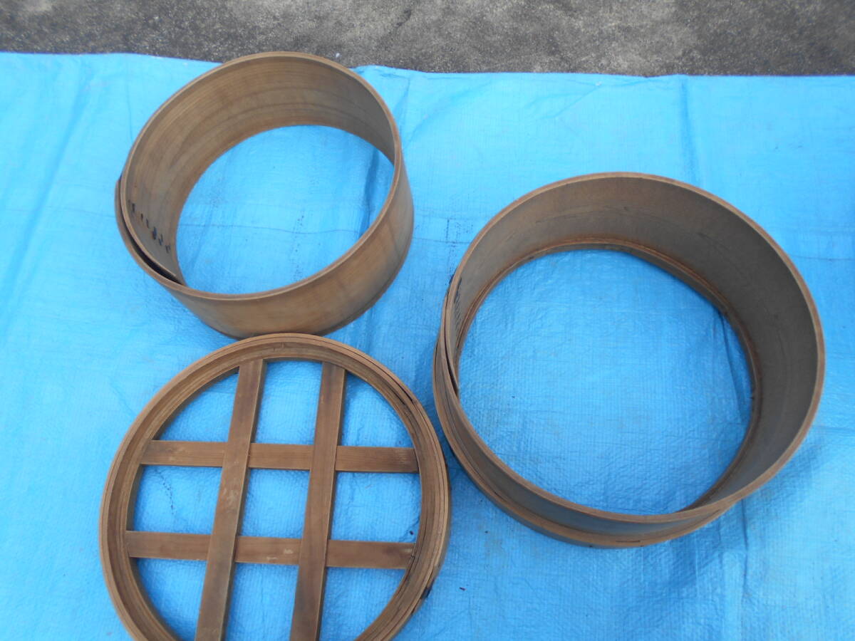 時代物 木製蒸し器3段 2段おまけ 巻きす4枚 セイロ 蒸篭 蒸籠 古民具 木製丸せいろ 中華 骨董 ヴィンテージ 大正 昭和 レトロ アンティーク | |