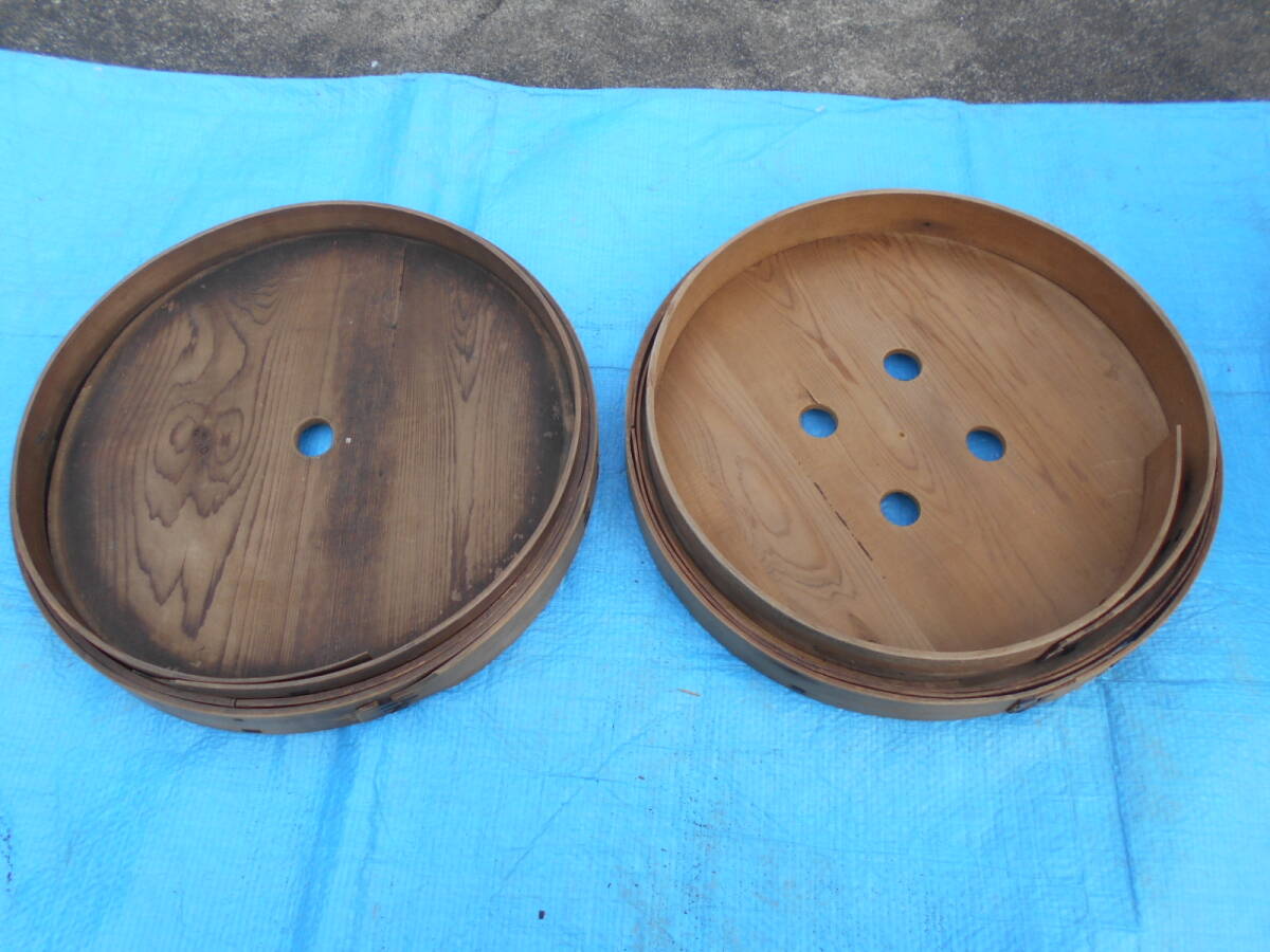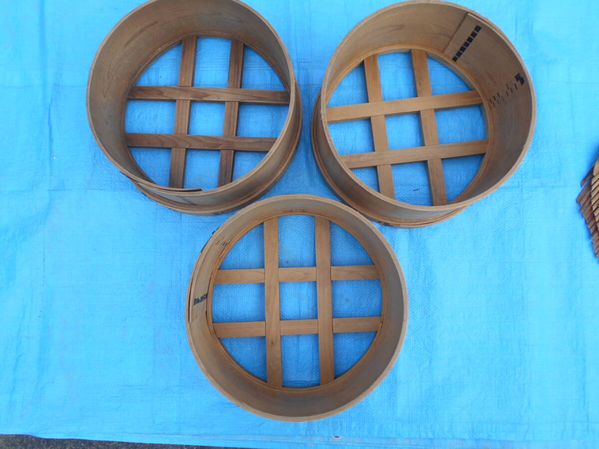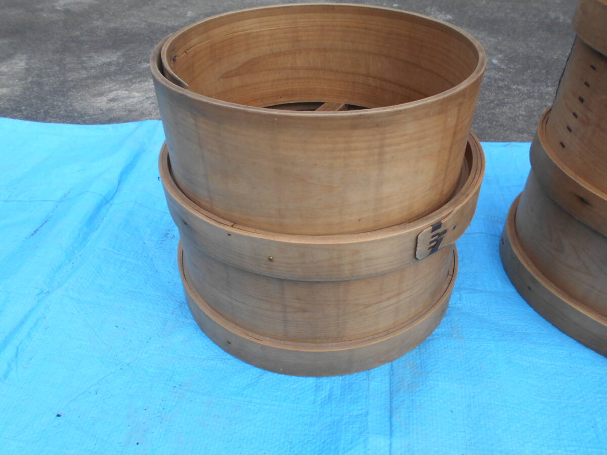 時代物 木製蒸し器3段 2段おまけ 巻きす4枚 セイロ 蒸篭 蒸籠 古民具 木製丸せいろ 中華 骨董 ヴィンテージ 大正 昭和 レトロ アンティーク | |