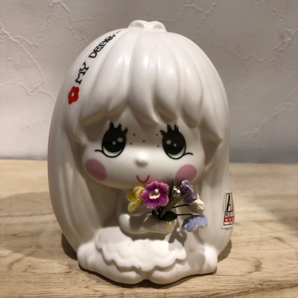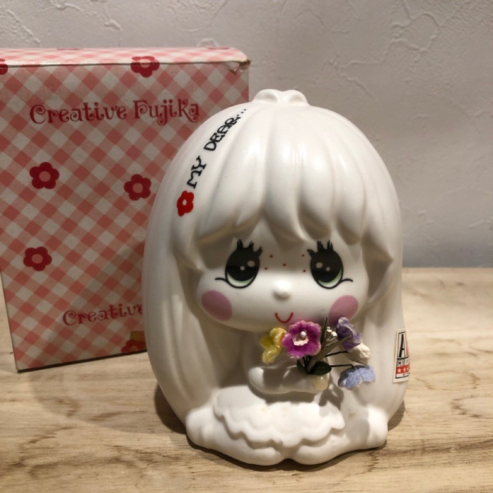 s1 箱付き FUJIKA フジカ 女の子 花 ファンシー 陶器  貯金箱 昭和レトロ ビンテージ