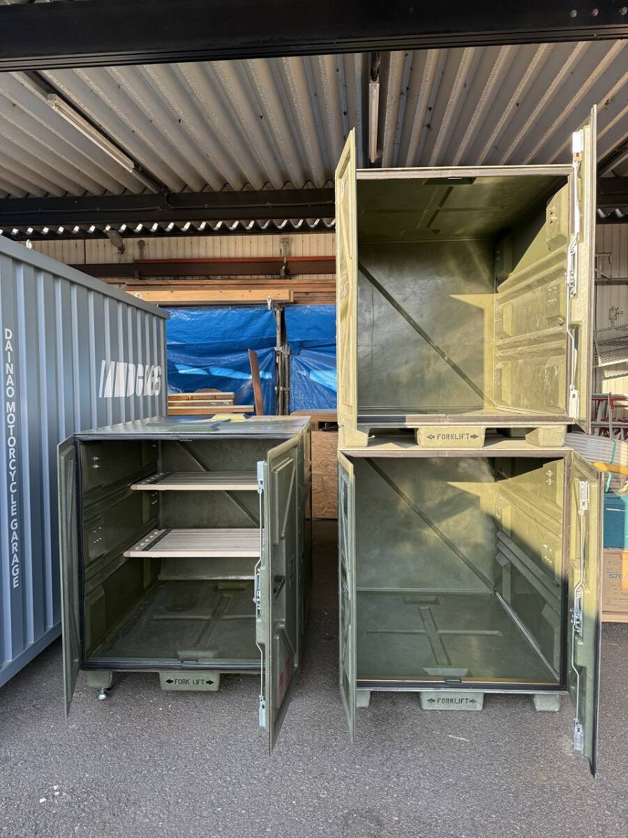 | 注意事項 | アメリカ軍放出品の中古ですので、傷、汚れ、落書きなどがあります。 扉部分のゴムパッキンは十分機能していますが、通常の雨で有れば水が侵入することは有りませんが横向きの雨などには水が浸入する可能性が十分あります。 画像はイメージ画像です。実際の商品とは異なります。ステンシル、デカール、落書き、汚れ等の位置が違ってきます。 イメージ撮影用の為、棚、装飾品等は含まれません。 在庫品がございますので即時発送いたします。 上記の事をご理解いただける方のみ入札をお願い致します。 現品、展示品の見学は可能ですのでお気軽にDAINAO GARAGE FACTORYまで相談ください。 |