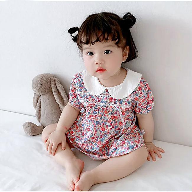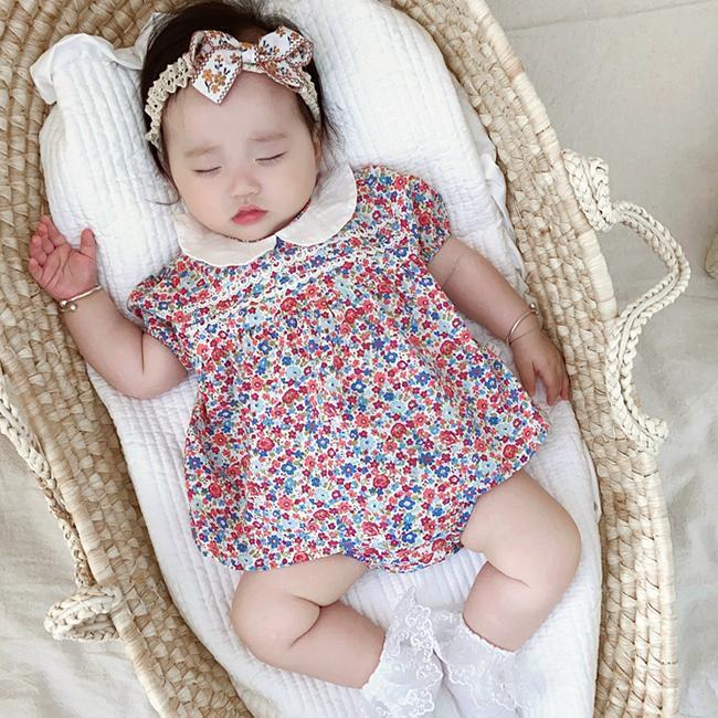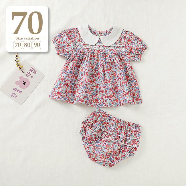 新品未使用 70cm 小花柄〔#BMブルマ付きワンピ〕ベビーパンツ オムツカバー セットアップ ワンピース 半袖 チュニック 丸襟ブラウス
