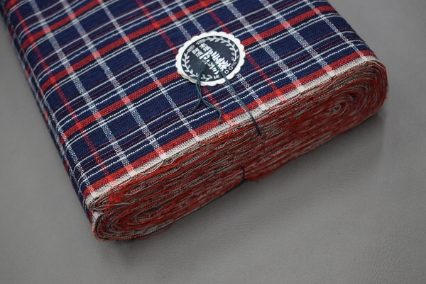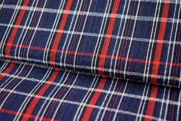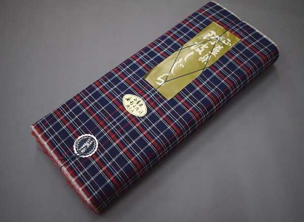 商品名   A30-5【凛々】即決 新古品 阿波正藍 しじら織 ゆかた反物 紺 赤 格子 未仕立て品