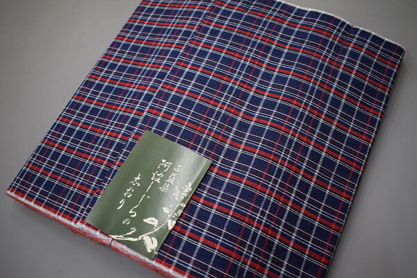 A30-5【凛々】即決 新古品 阿波正藍 しじら織 ゆかた反物 紺 赤 格子 未仕立て品