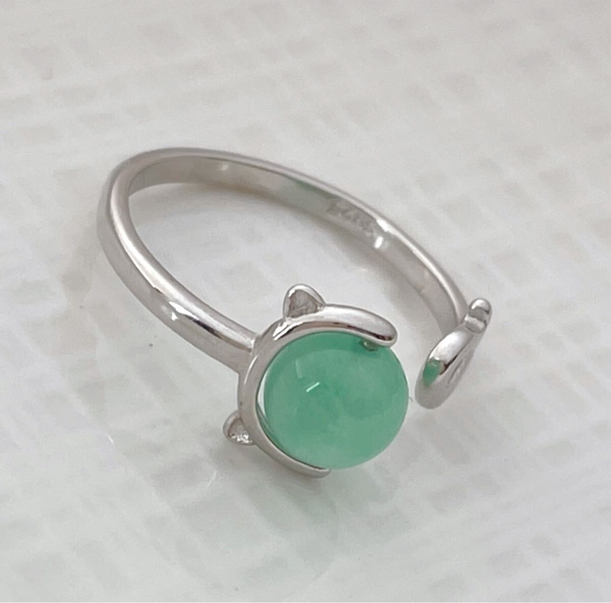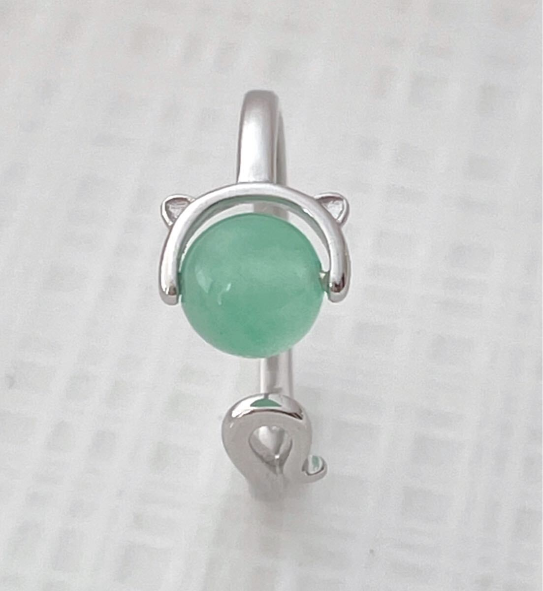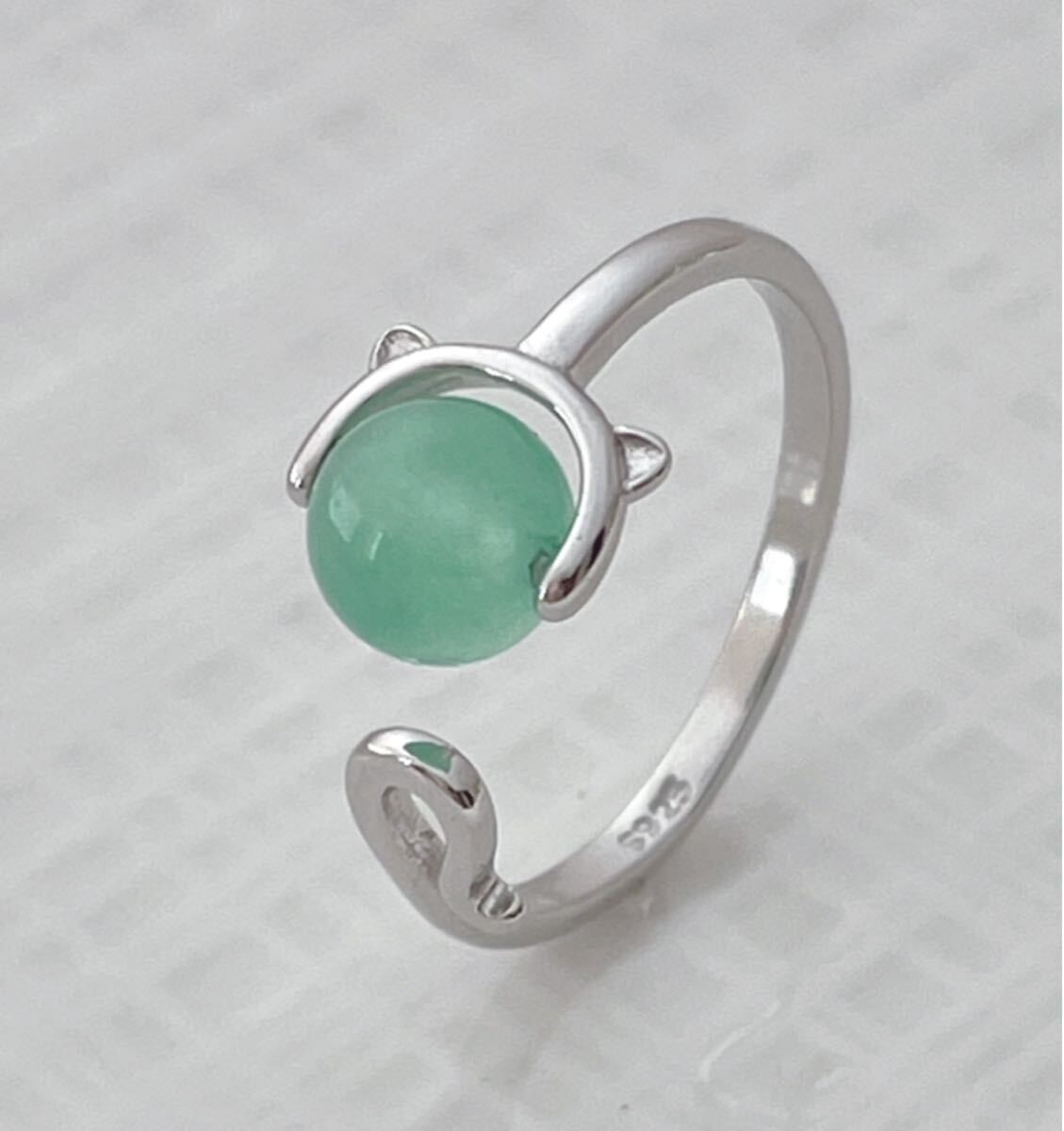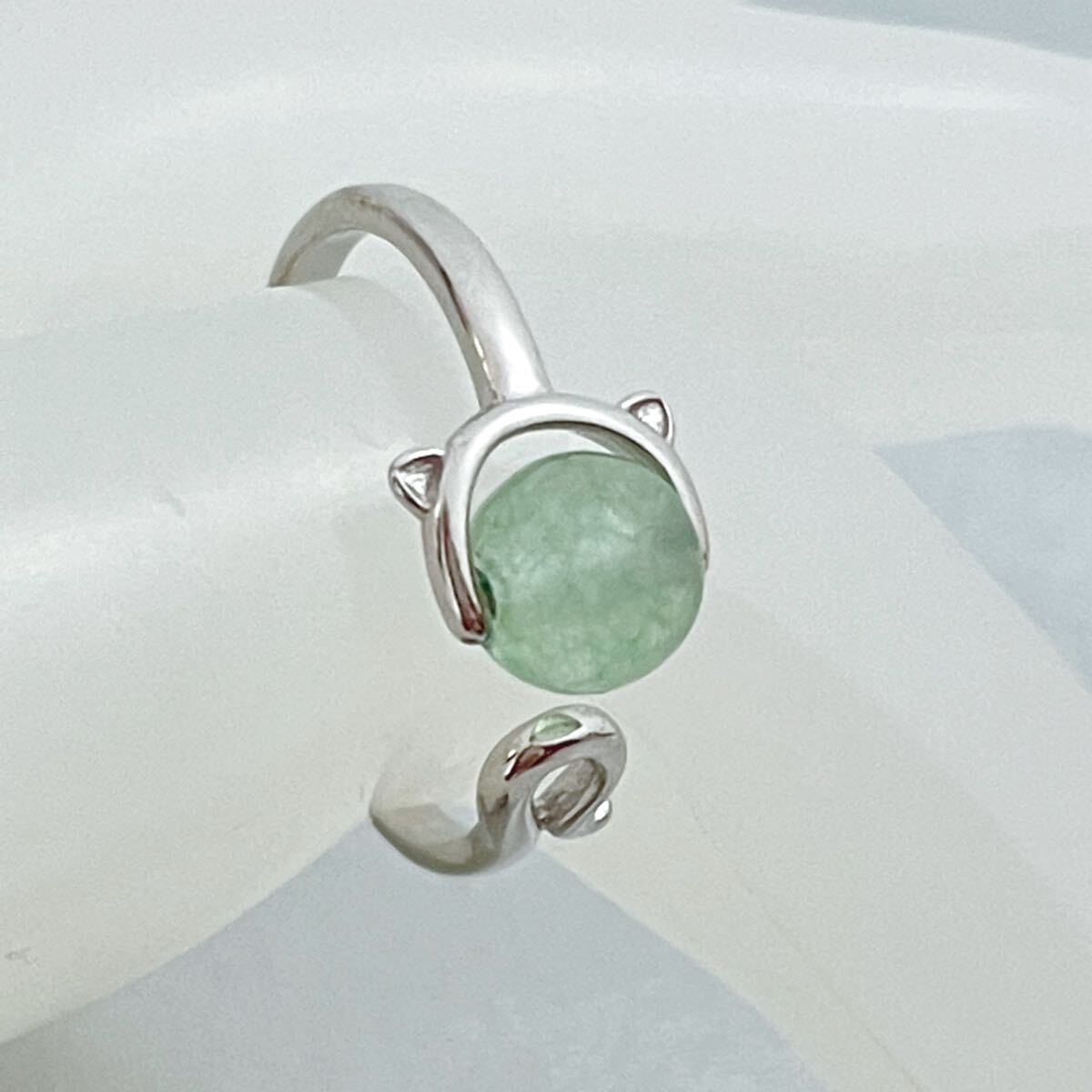 #天然石リング #シルバーリング #オープンリング #ネコリング #猫耳 #アベンチュリン #ハンドメイドリング #シルバー925 #インデックスリング #ミドルリング #アニバーサリーリング