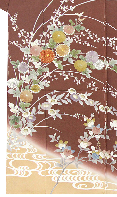 | ※記念感謝祭【仕立無料】京友禅伝統工芸手描染☆優美四季花祝い流水文訪問着☆本金加工、手刺繍仕様 |