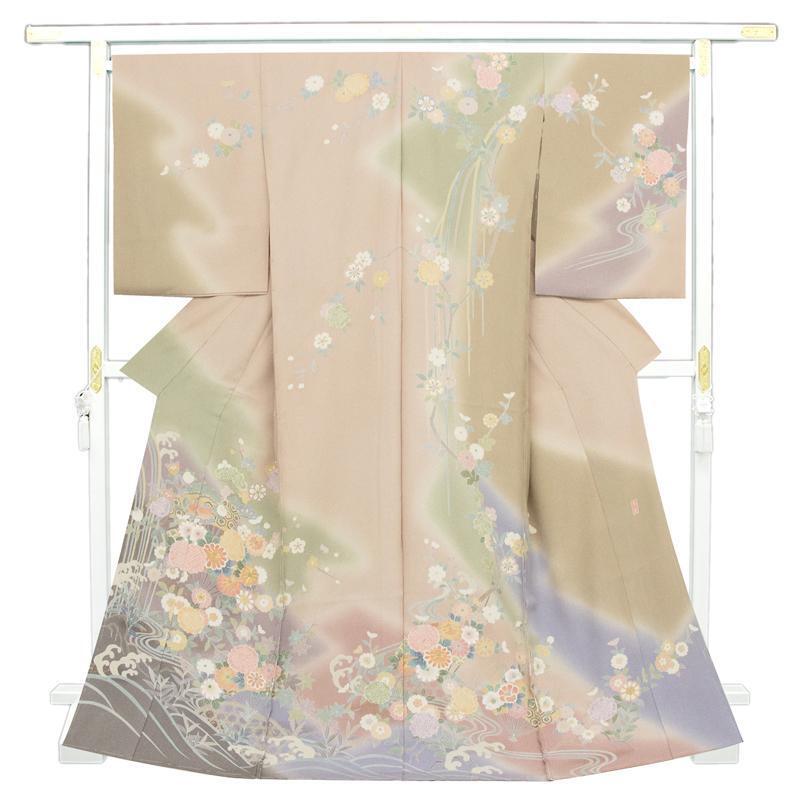 | ★品質・詳細 | ○地色 【こちらの地色はベージュ、緑の多色系です。】 ○絹織物 ○新品・未仕立の逸品訪問着の仮絵羽です。 ○最高級ちりめん生地使用 ○参考上代 680,000円 |
