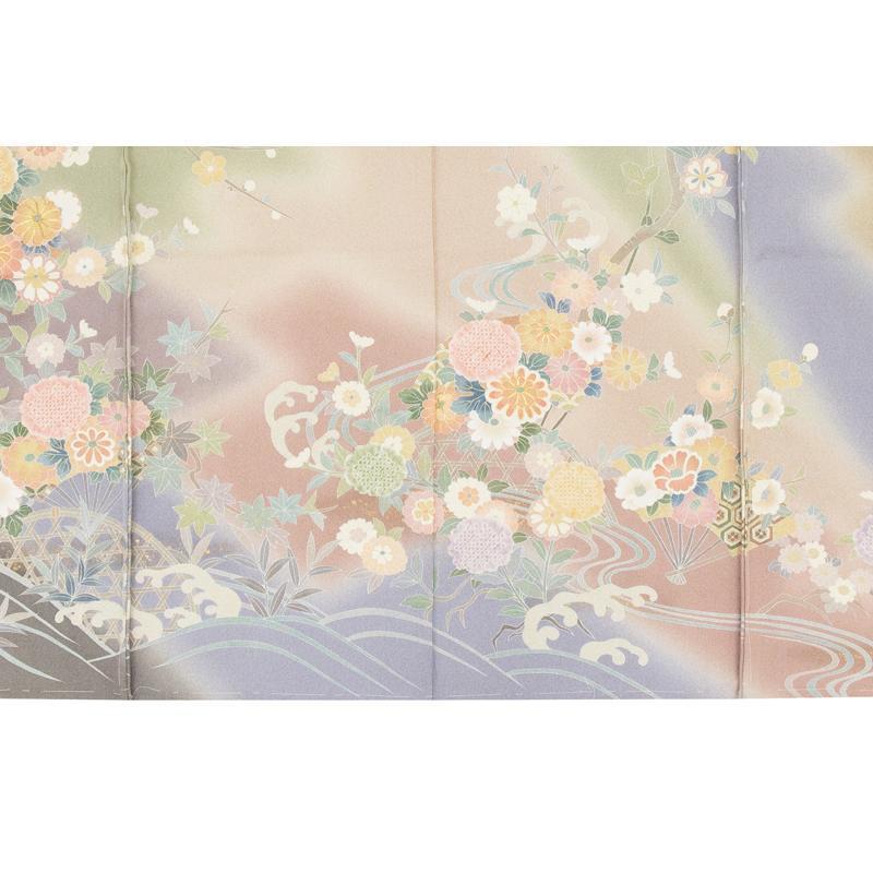| ※記念感謝祭【仕立無料】京友禅伝統工芸本絞り入手描き友禅本加工訪問着☆四季花庭園図☆落款入 |