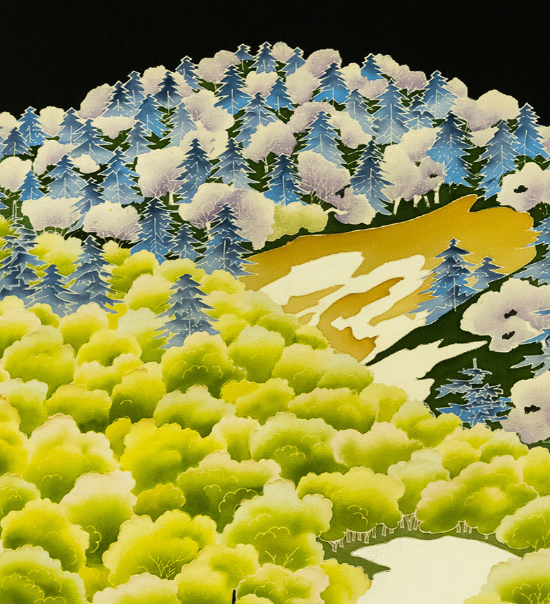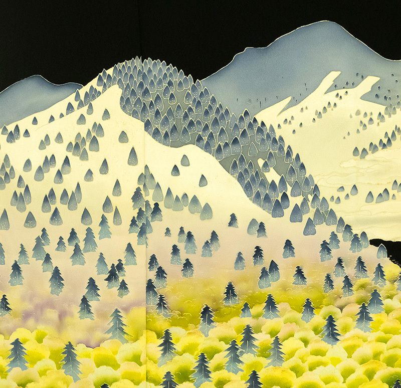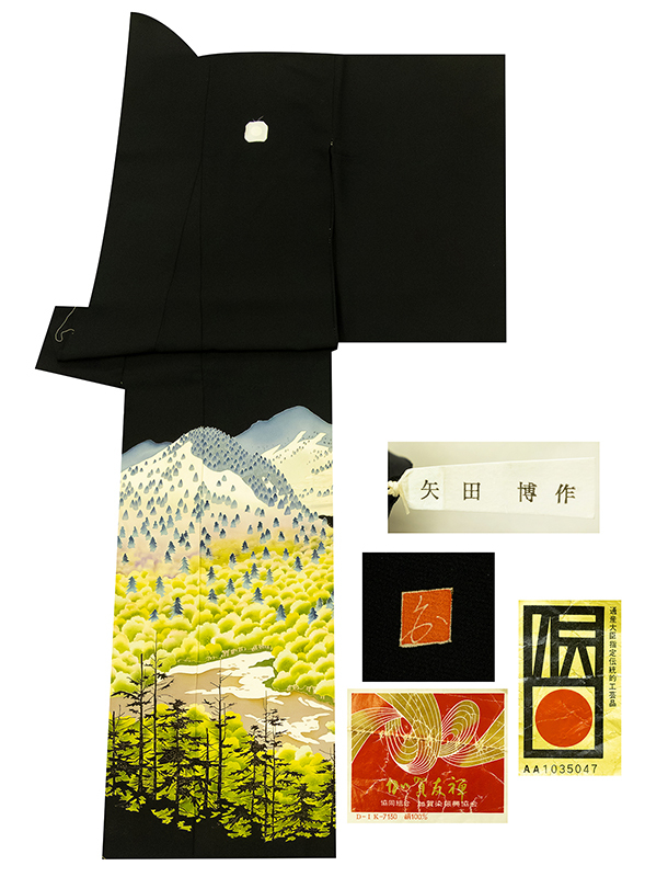 | ★商品説明 | ■加賀五彩の中でも藍色を多用した最高級の手描き礼装黒留袖を加賀友禅創生期から築いた巨匠矢田博先生の黒留袖です。 ■祝い北山王朝杉をメインに加賀風景文を格調高く描いた特別の創作品です。 ■こだわりの色彩の藍と緑の特撰美術で制作した礼装黒留袖が大切な式典で最高の着姿を披露します。 |