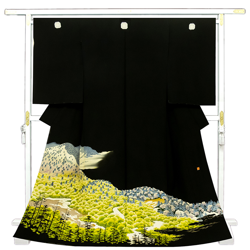 | ★品質・詳細 | ○地色 【こちらの地色は上品な黒地です。】 ○絹織物 ○新品・未仕立の特撰黒留袖の仮絵羽です。 ○最高級濱ちりめん生地使用 ○参考上代 1,380,000円 |