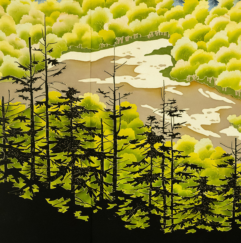| ※記念感謝祭【仕立無料】本加賀友禅特撰手描き黒留袖☆伝統工芸作家巨匠矢田博先生作祝北山王朝杉風景文 |