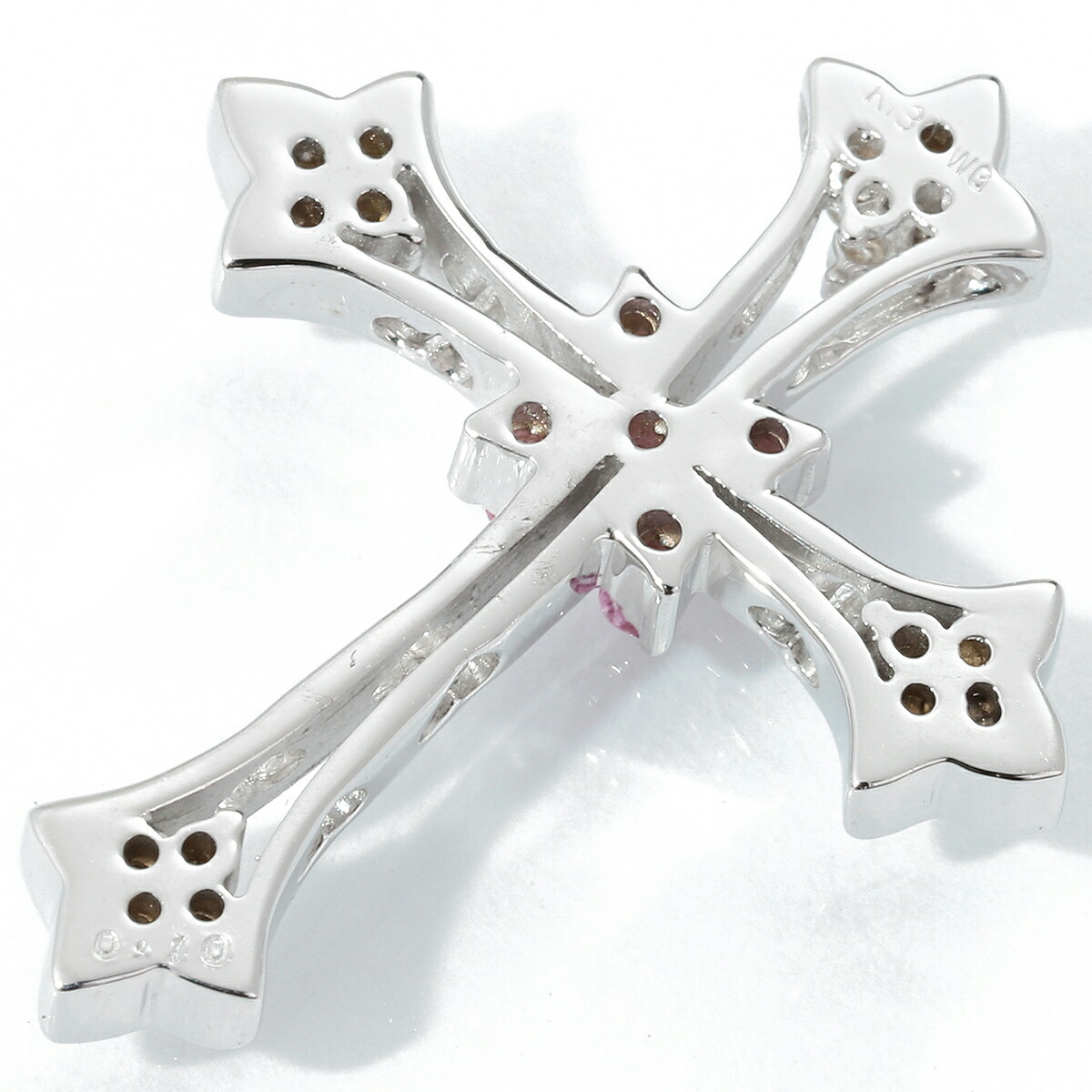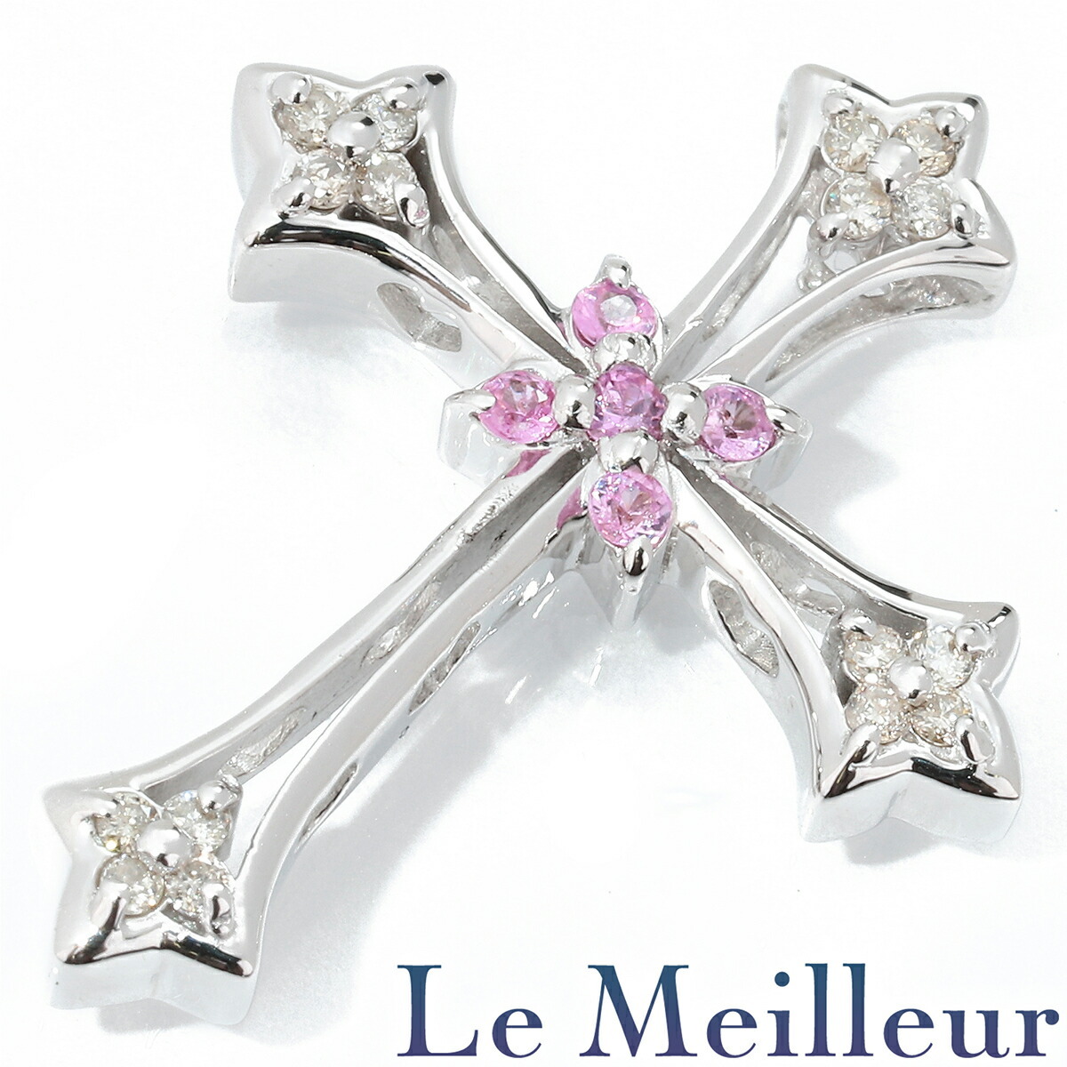 澄んだ煌めきを湛えるホワイトゴールドに、ピンクサファイアの可憐な彩りを添えたクロスペンダントトップ。シンプルながらも目を引く存在感があり、胸元に上品な華やかさをそっと添えてくれます。
