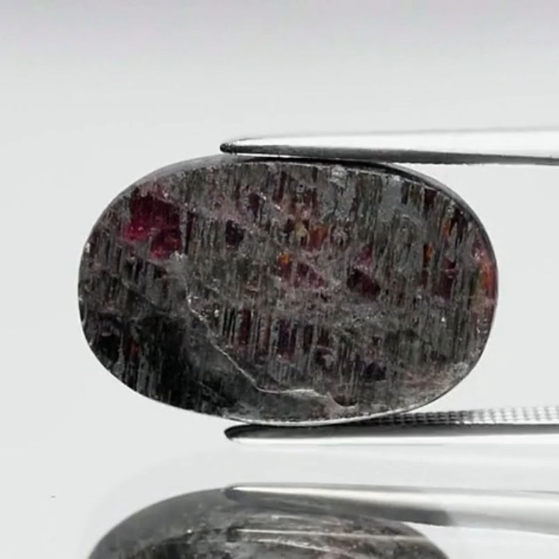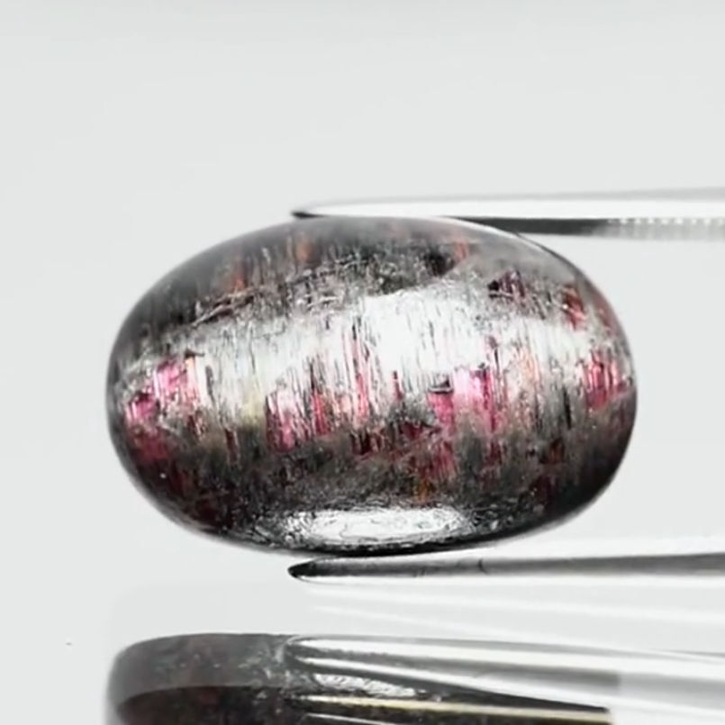 アフリカ産 ピンキッシュパープルのキャッアイトルマリン オーバルカボションシェイプ。