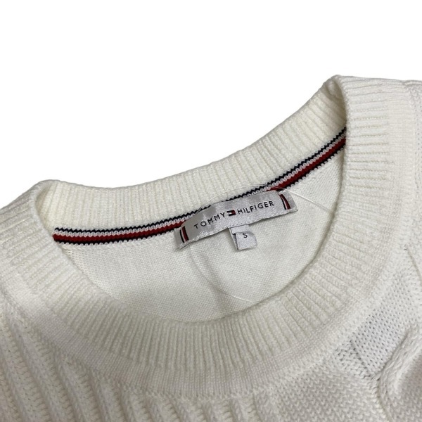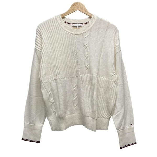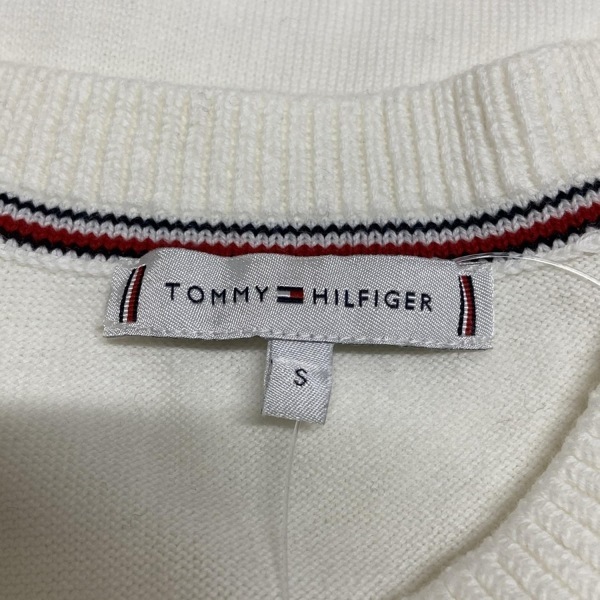 トミーヒルフィガー TOMMY HILFIGER 長袖セーター/ニット サイズS - 白×ダークネイビー×レッド メンズ クルーネック トップス