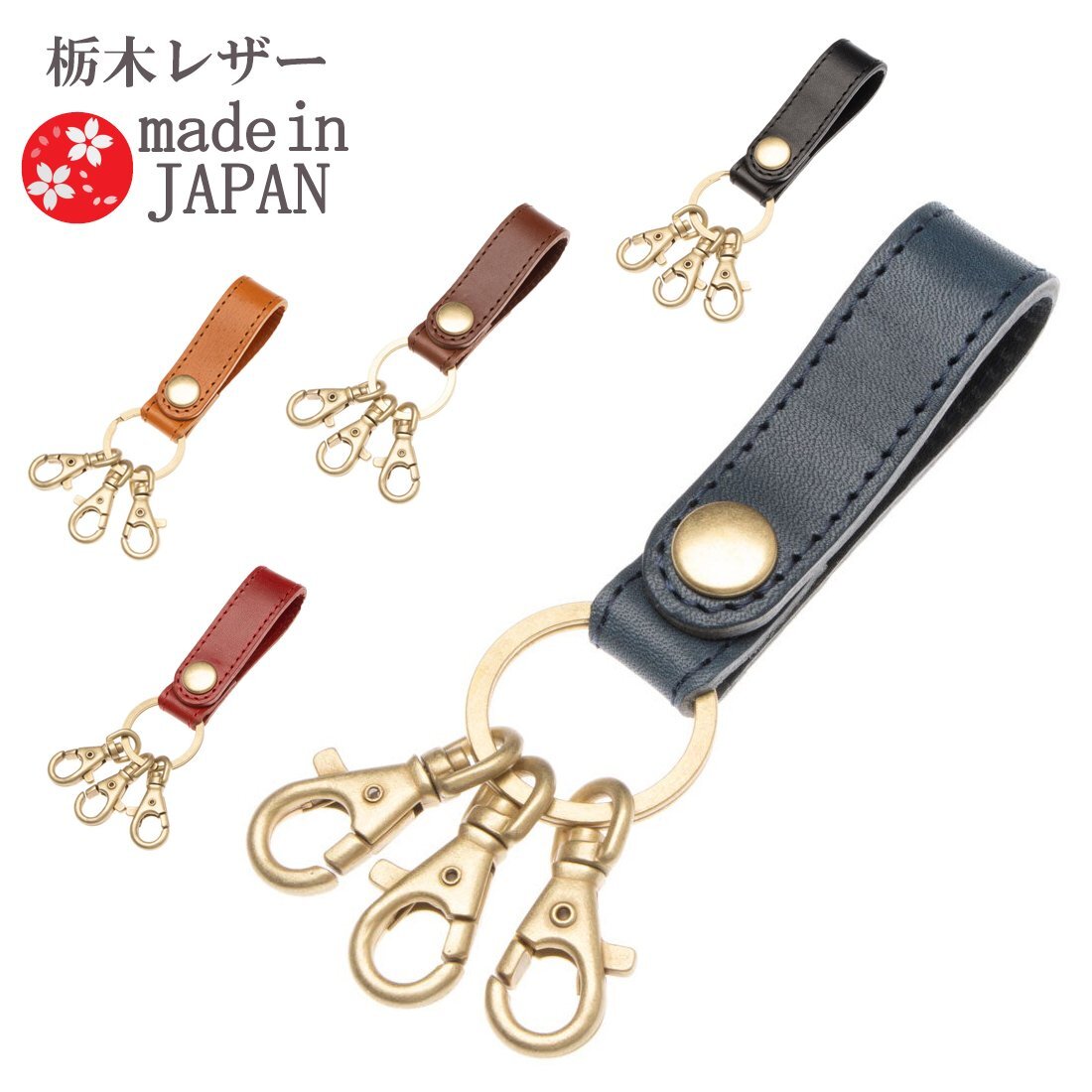 日本製 レザー キーリング カラビナウォレットチェーン 栃木レザー キーホルダー 牛革 牛皮 アンティークゴールド カギ 贈り物 ギフト