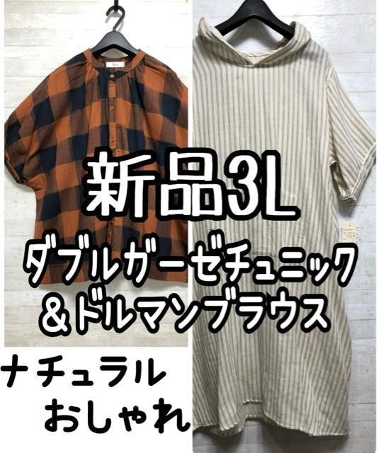 新品☆3L♪ナチュラルおしゃれ♪ガーゼチュニック&ドルマンブラウス☆G715