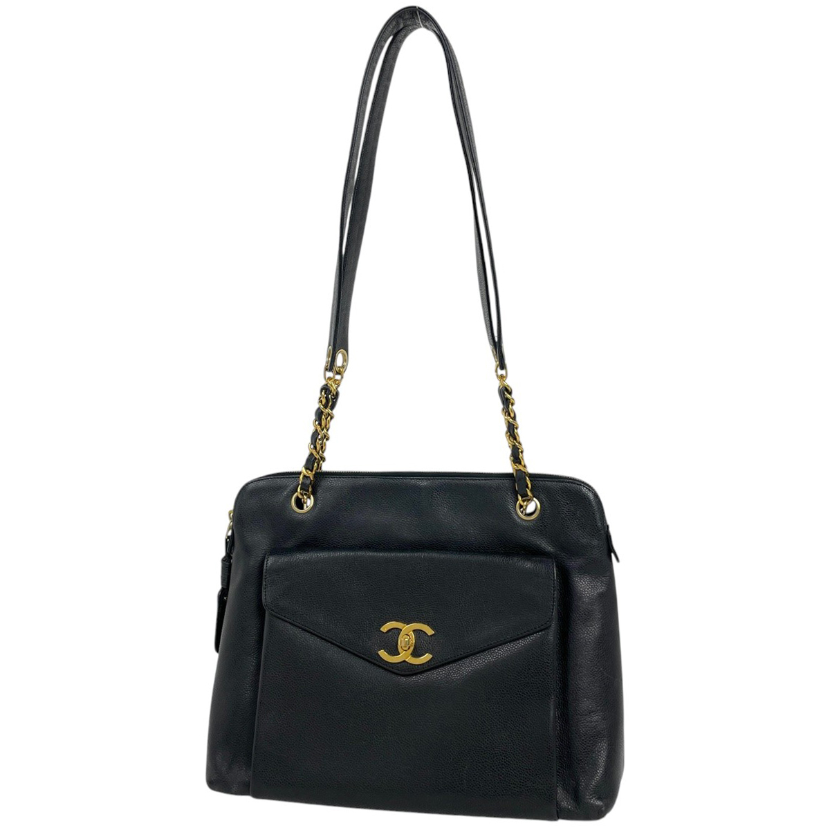 | シャネル CHANEL ココマーク チェーン トートバッグ ロゴ ショルダーバッグ トートバッグ キャビアスキン ブラック レディース 【中古】 |