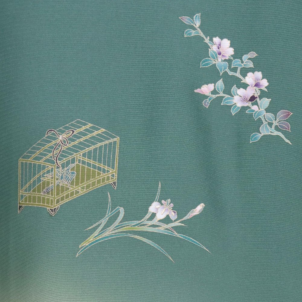 | 色・柄 | 螺鈿作家 藤本隆士氏作 絽 訪問着 丹後縮緬地 緑(天鷲絨色)・ベージュ暈し地 芸者 螺鈿入り 月窓・花柄 (写真では上手く色が出ない場合があります。ご了承下さい) |
