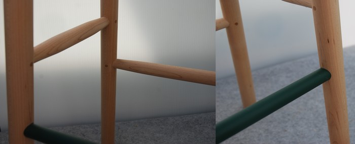 TチェアとOスツールからなる新しいコラボレーションは、深みのあるカラースチールとメープル材によるフレンドリーな組み合わせが特徴。