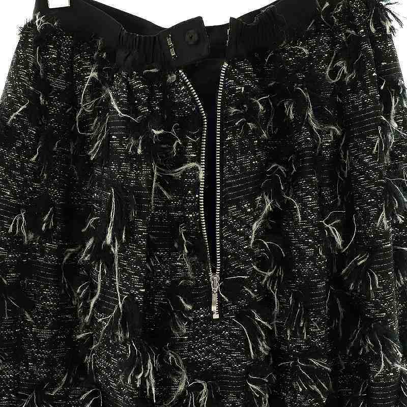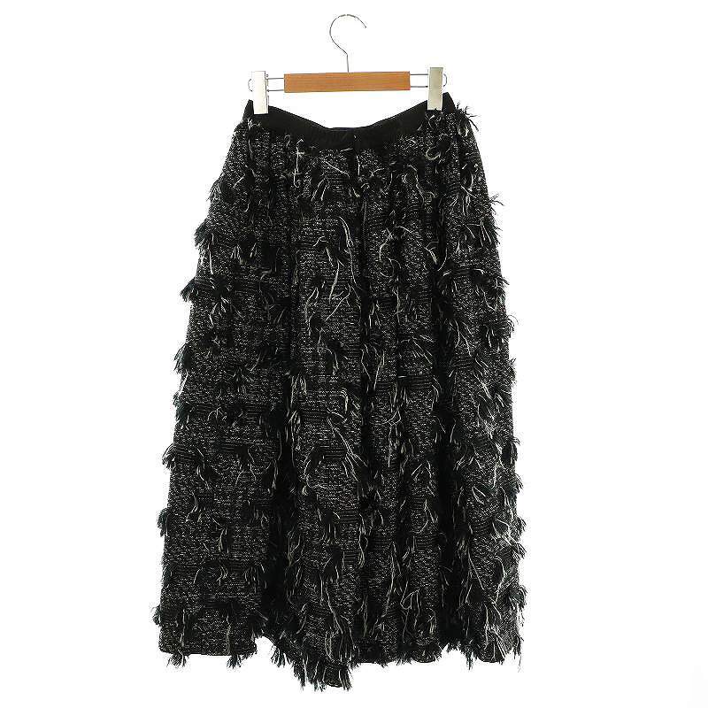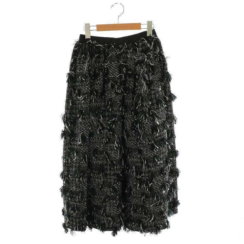 オブリ OBLI フリンジスカート フレア ロング 0 ブラック /HK ■OS レディース