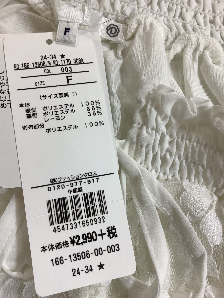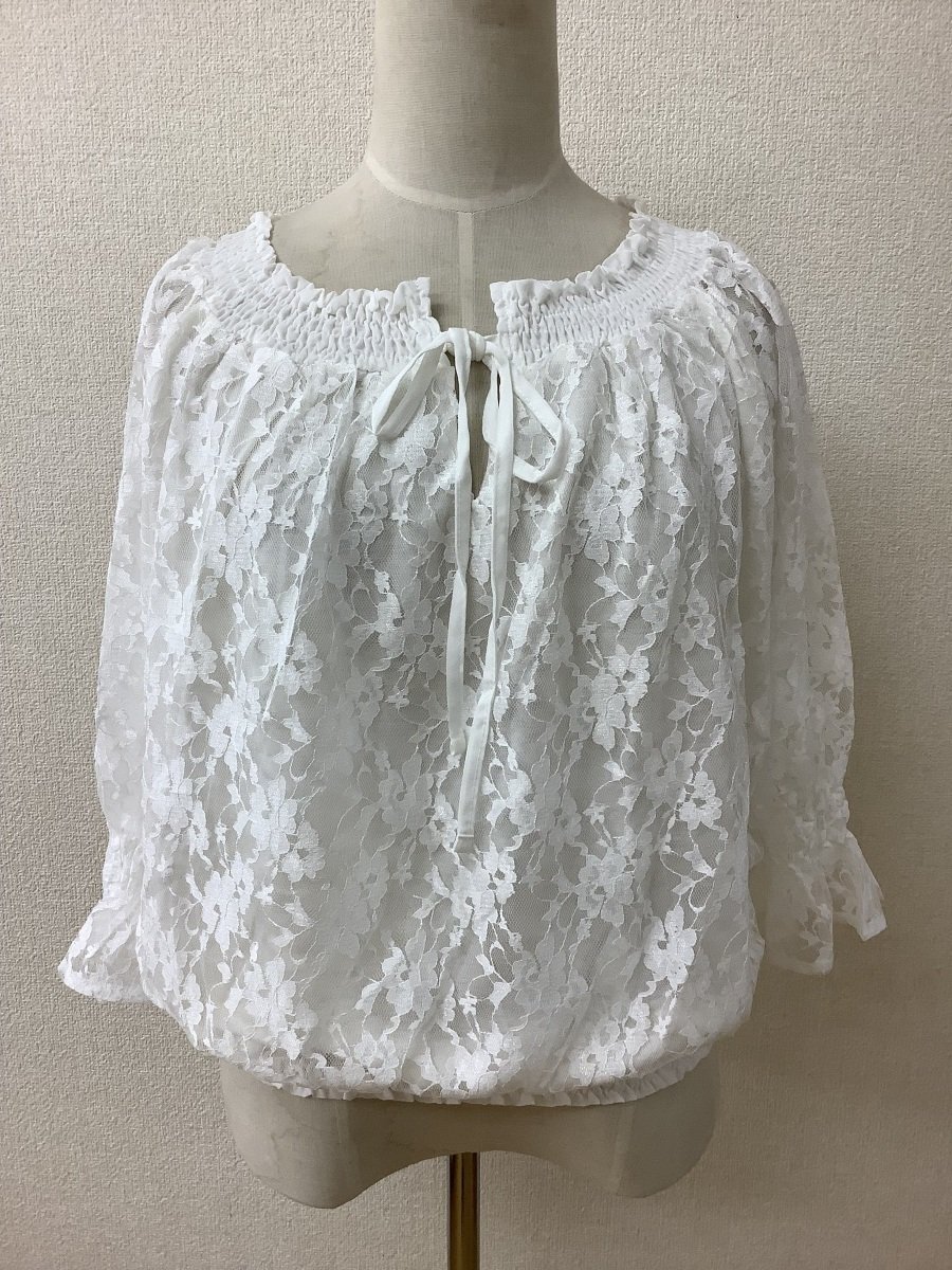 管理番号:10^136706 イッツデモ タグ付き未使用 白レーストップス 表示サイズ:F 実寸(参考)