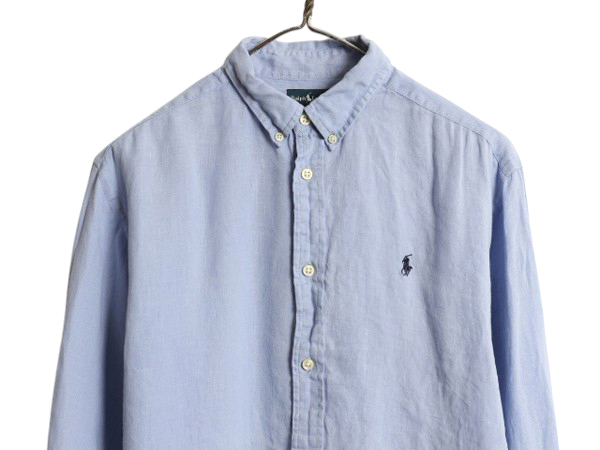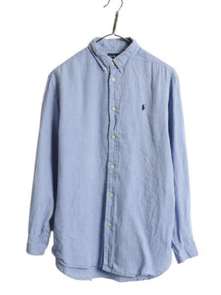商品名 | 00s ラルフローレン 長袖 ボタンダウン シャツ キッズ XL メンズ S 程 オールド ポロ 長袖シャツ 100% リネン 高級 BD ワンポイント ブルー |