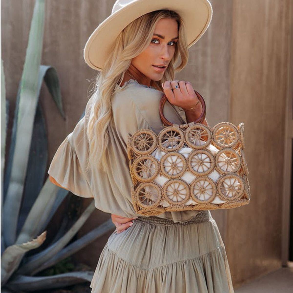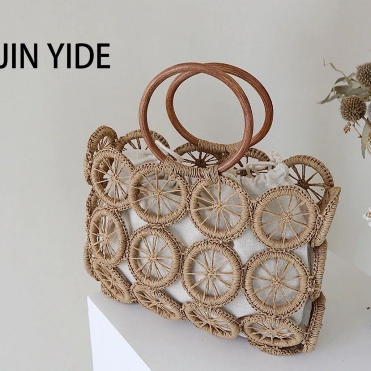 【 カゴバッグ バッグ 巾着 付き 鞄 カバン ハンドバッグ バスケット 編み込み ウッドハンドル トートバッグ ピクニック 】