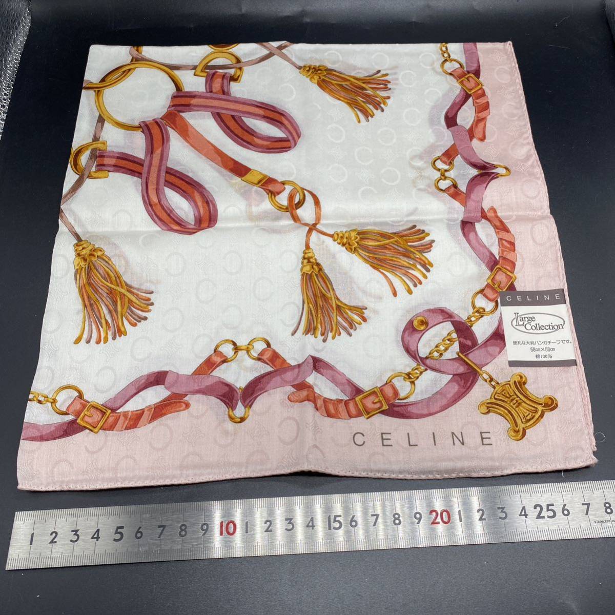 CELINE セリーヌ ハンカチ 大判  ピンク タッセル ベルト no.35
