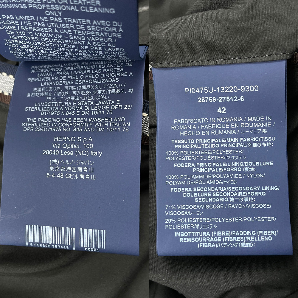 美品 HERNO ポーラテック N-3B ナイロン ダウンジャケット 42 黒 / ヘルノ PI0475U POLAR-TECH ビーバーファー ブラック メンズ アウター