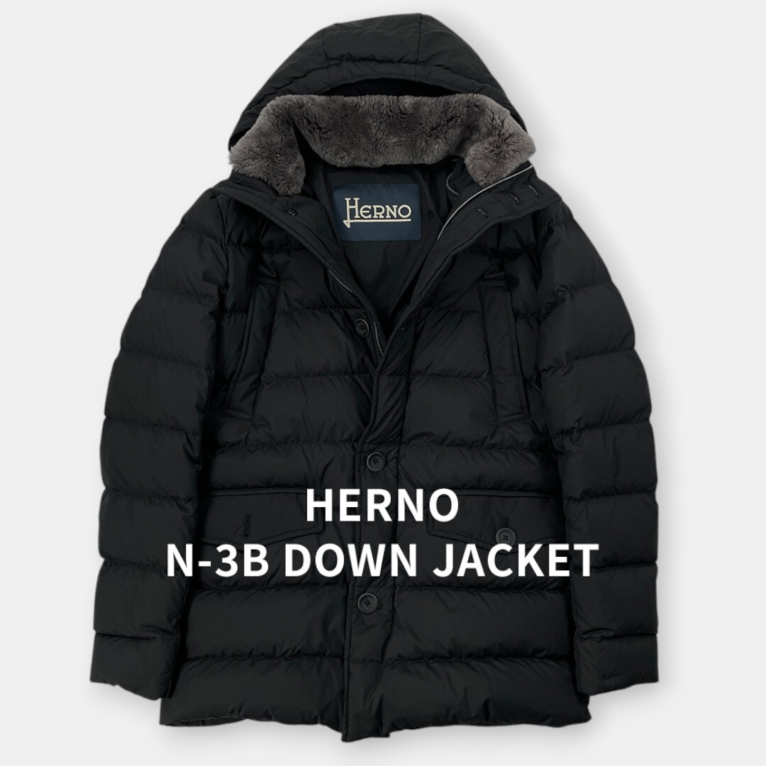 HERNO ヘルノ / POLAR-TECH ポーラテック / N-3B Nylon Down Jacket ビーバーファー ナイロン ダウンジャケット / PI0475U / 黒 ブラック / メンズ アウター