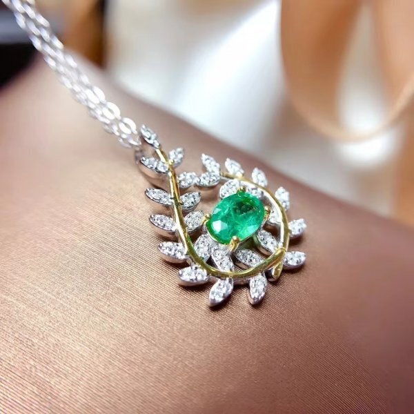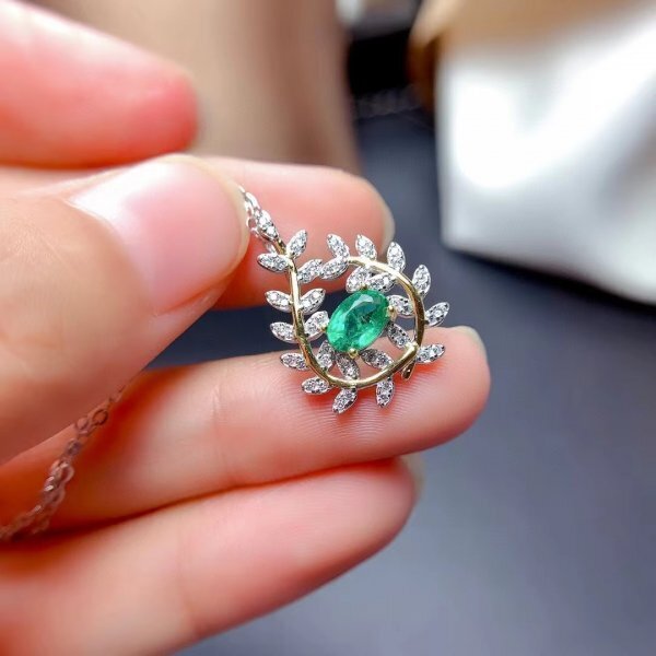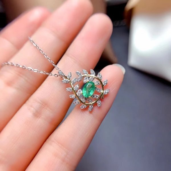 天然エメラルドの枝のペンダントネックレス、本物の925シルバー、証明書