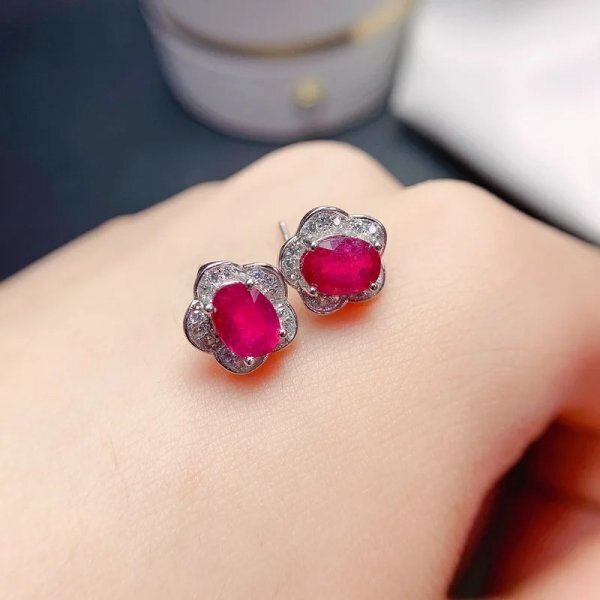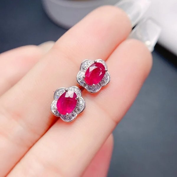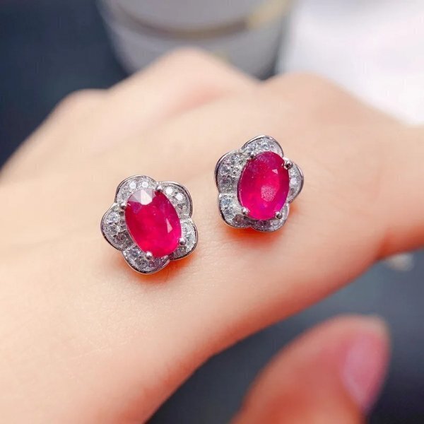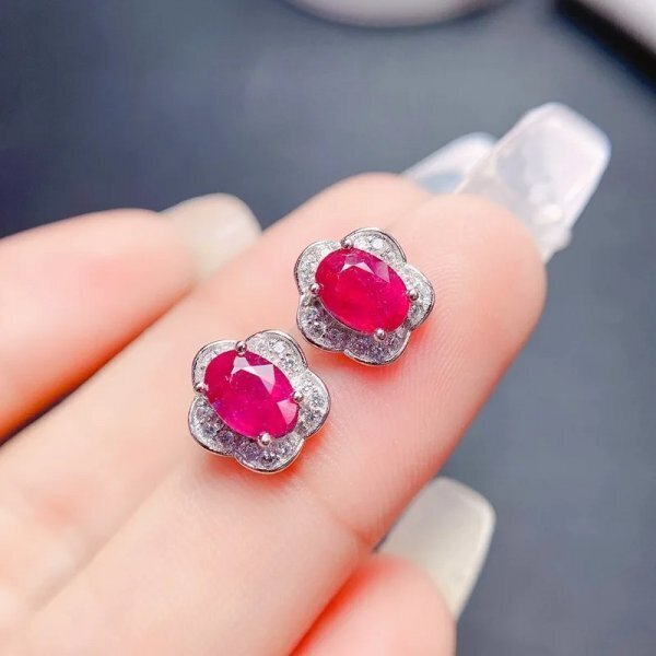 925スターリングシルバー ナチュラルルビーピアス 3*4mm 証明書