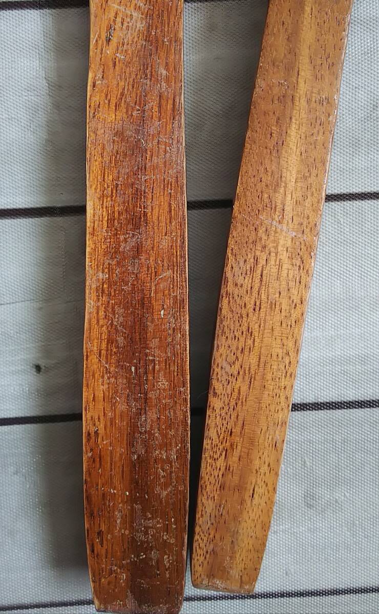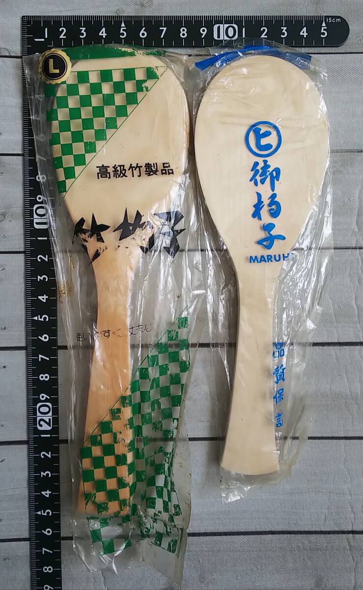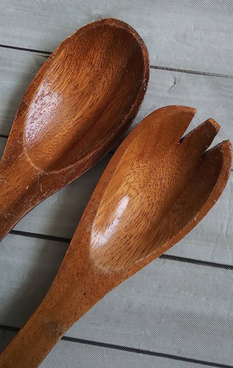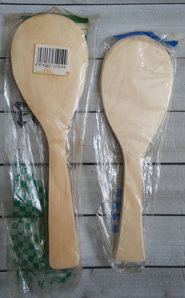 委託品で、木製サラダサーバー(スプーン&フォーク)と、竹、木べら,しゃもじの4点です。サラダサーバーは中古で、傷みられました。竹、木べらは未使用ですが、長期保管されていた物でパッケージ袋に破れ、汚れベタつきみられました(写真最後)。
