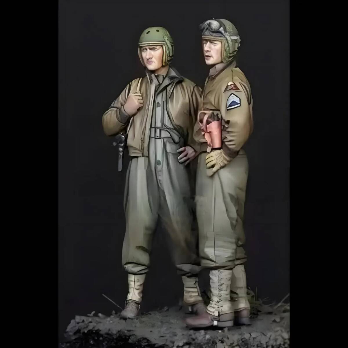 1/35 WW2 大戦 兵士 アメリカ 米軍師団 男性 2名 樹脂 模型 未塗装 未組み立て レジン フィギュア Q327