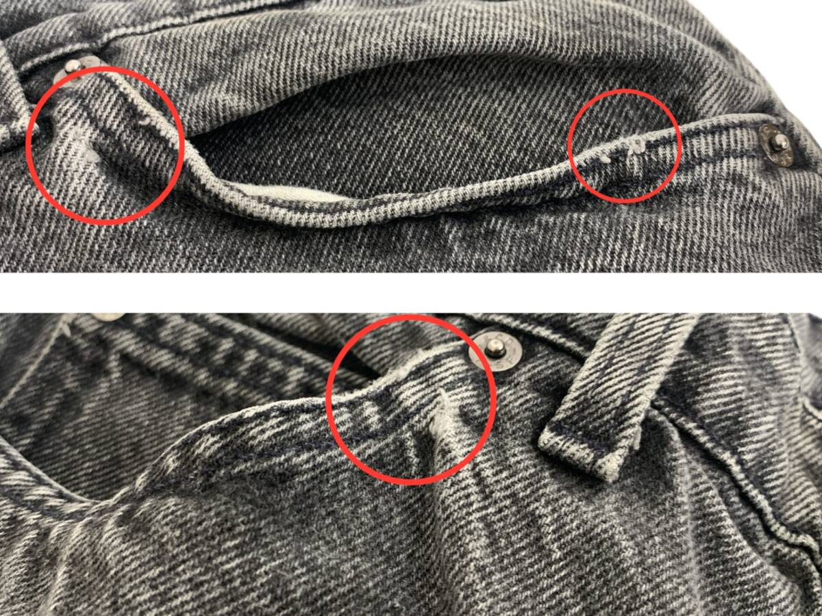 状態詳細 | 全体的に使用感がある商品となっております。ポケット部分、股部分裾部分のダメージ(写真6.7.8枚目参照)、ボタン部分の糸ほつれ(写真8枚目参照)後ろポケット部分、右裾付近、左もも部分に汚れ(写真9.10枚目参照)がございますがまだまだお使い頂ける状態となっております。(詳細は画像をご確認ください) ・出来る限り状態の記載はいたしますが見落としにより完全に表記が出来ない場合がございます。 ・『新品』『デッドストック』『未使用品』表記の商品におきましても未使用品ですが、汚れ・伸びなどが若干生じる場合があります。 ・ご利用のパソコン環境や撮影時の光の加減で色や素材感などうまく表現できない場合があります。 ・気になる点は必ず落札前にご質問をお願いいたします。 |