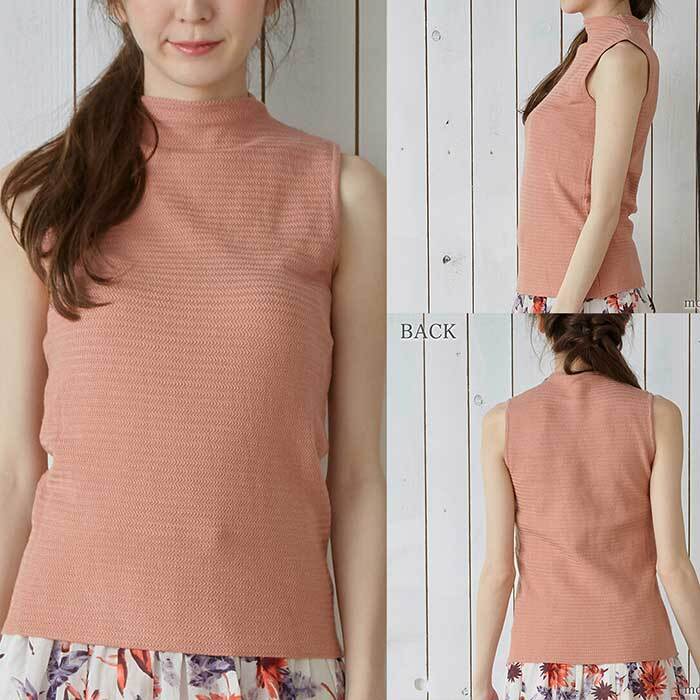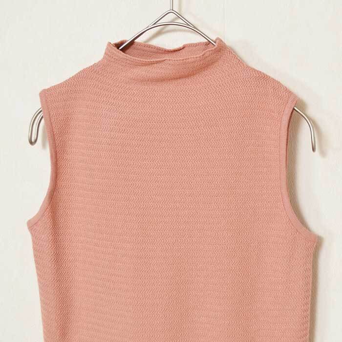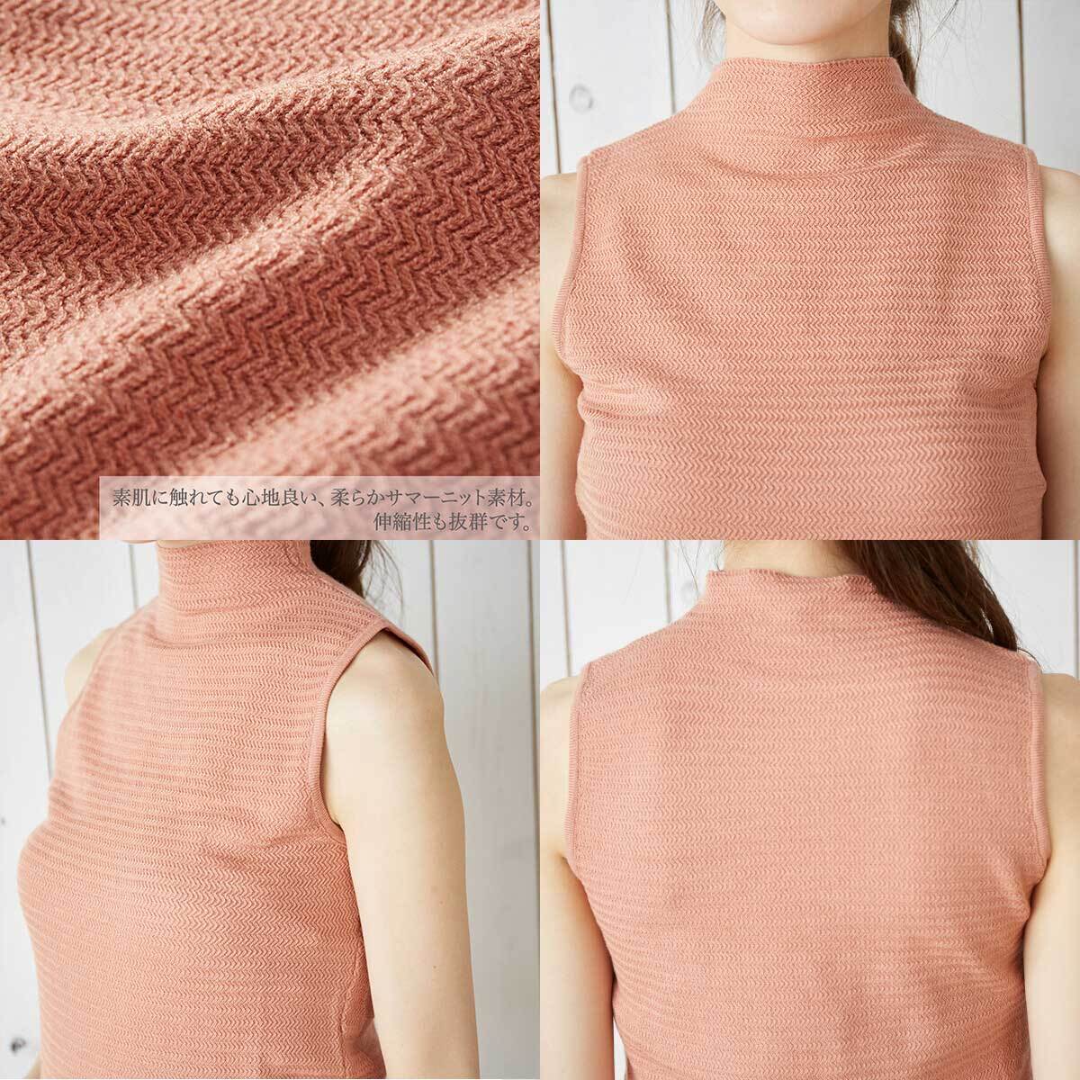 新品☆サマー ニット M ボトルネック ノースリーブ トップス カットソー レディース インナー 無地 柔らか 夏/ピンク/91200141