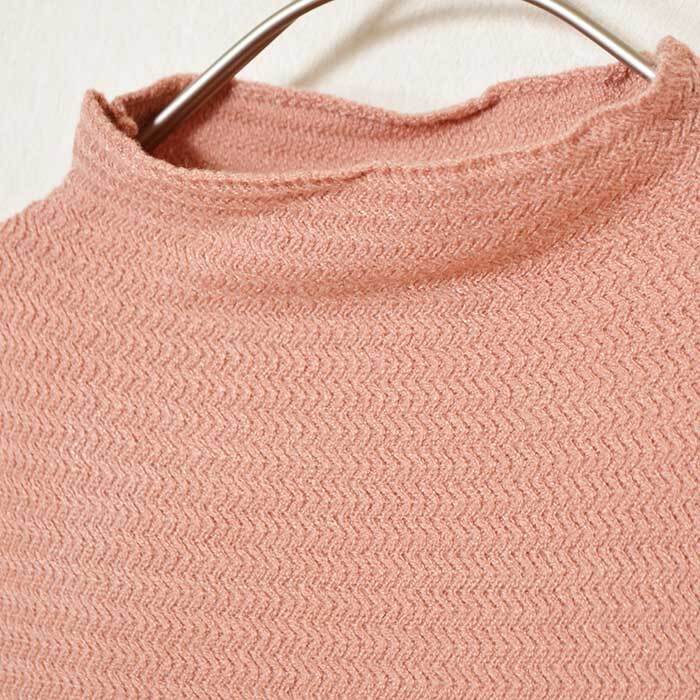 ・表情あるガーター編みがトップをすっきり魅せ、ボディに程よくフィットする伸縮性のサマーニット素材。