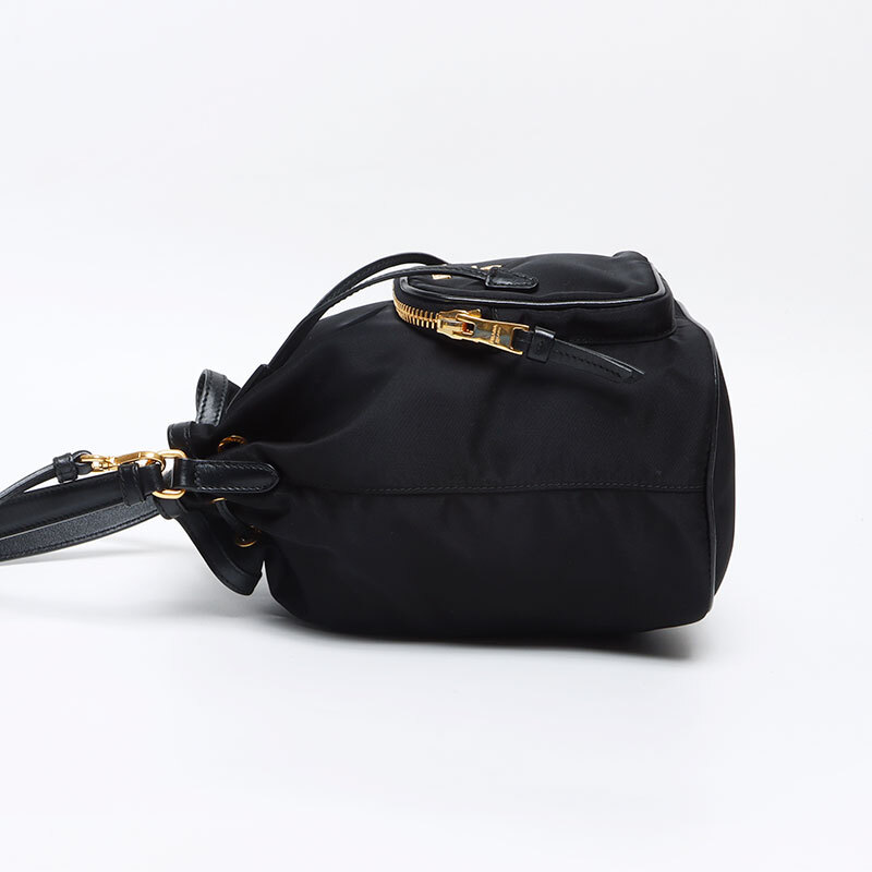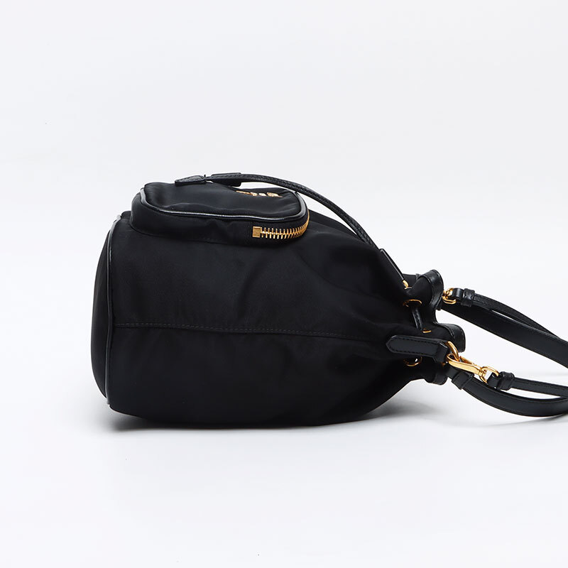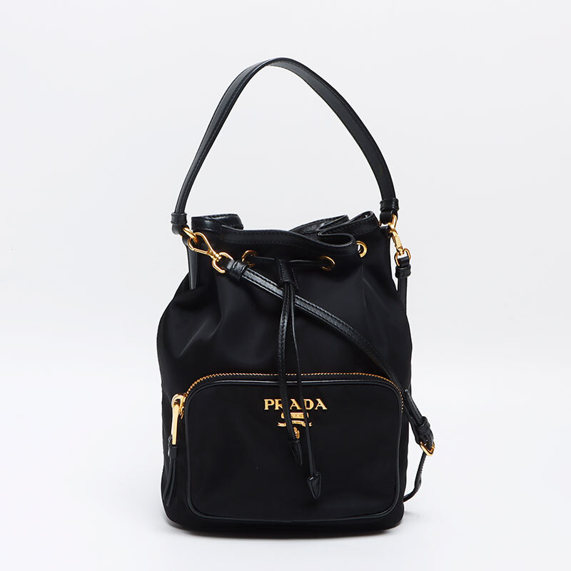 プラダ PRADA ショルダーバッグ ナイロン ロゴ 2way 巾着 ヴェラ ブラック