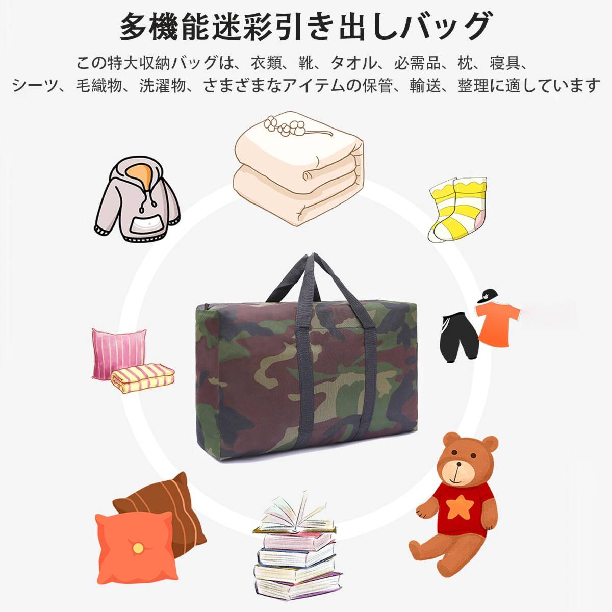 【125L迷彩引越袋】90*48*28 cm, 125L-十分な包装スペースがあり、これらの袋は移働を完璧にするため、持ち運びが軽く、経済的な代替移働箱です。防水、省スペース、引っ越し、旅行、大学寮、キャンプに最適です,収納容器や移働袋として、衣類、毛布、布団、セーター、シーツ、タオル、枕などを便利に収納できます。未使用時は小さく折り畳めてコンパクトになるので、省スペースで保管していただけます。