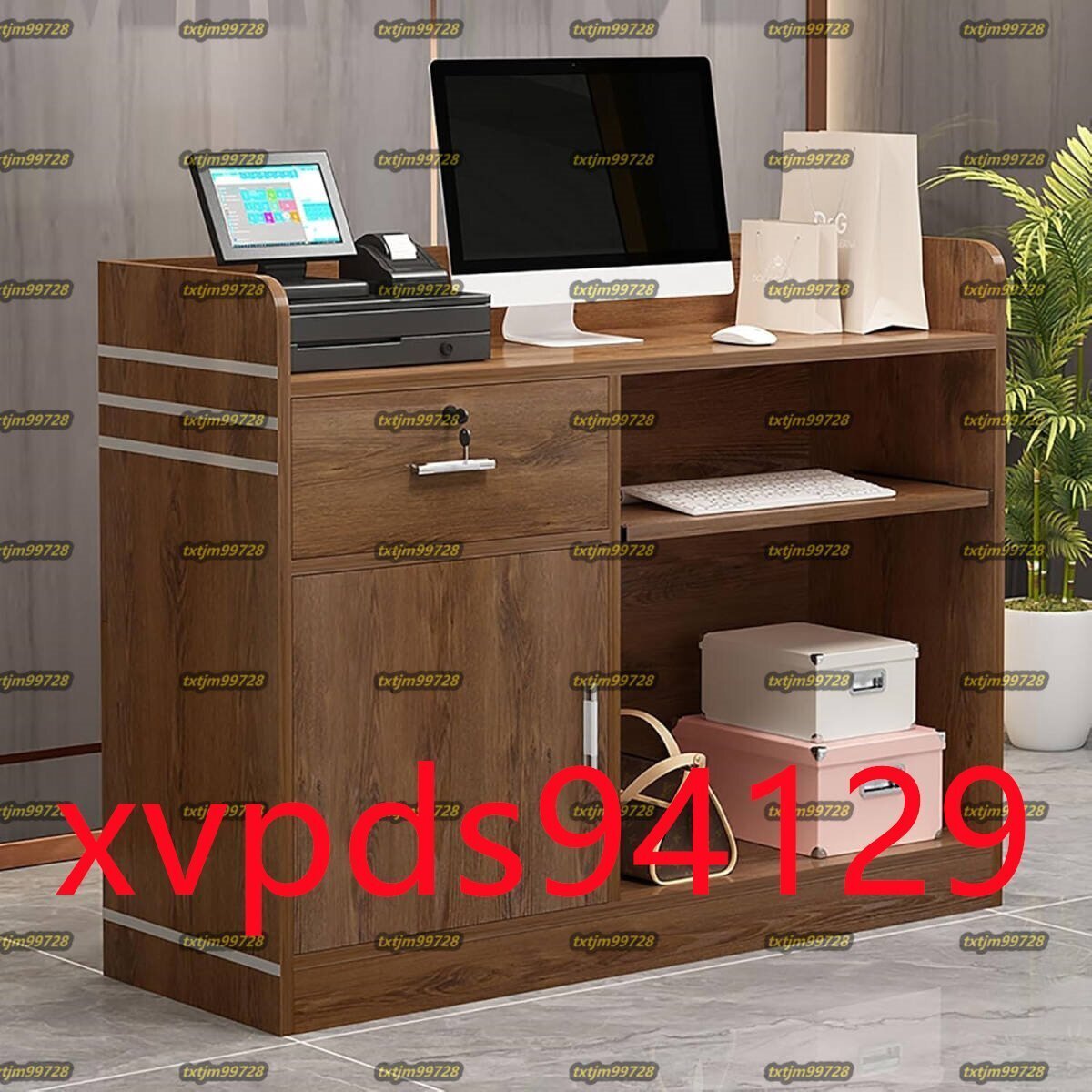 受付カウンター 木製 レジカウンター レジ係カウンター 組み立てが簡単 おしゃれ オフィス受付台 防湿 大容量の収納スペース 100CM