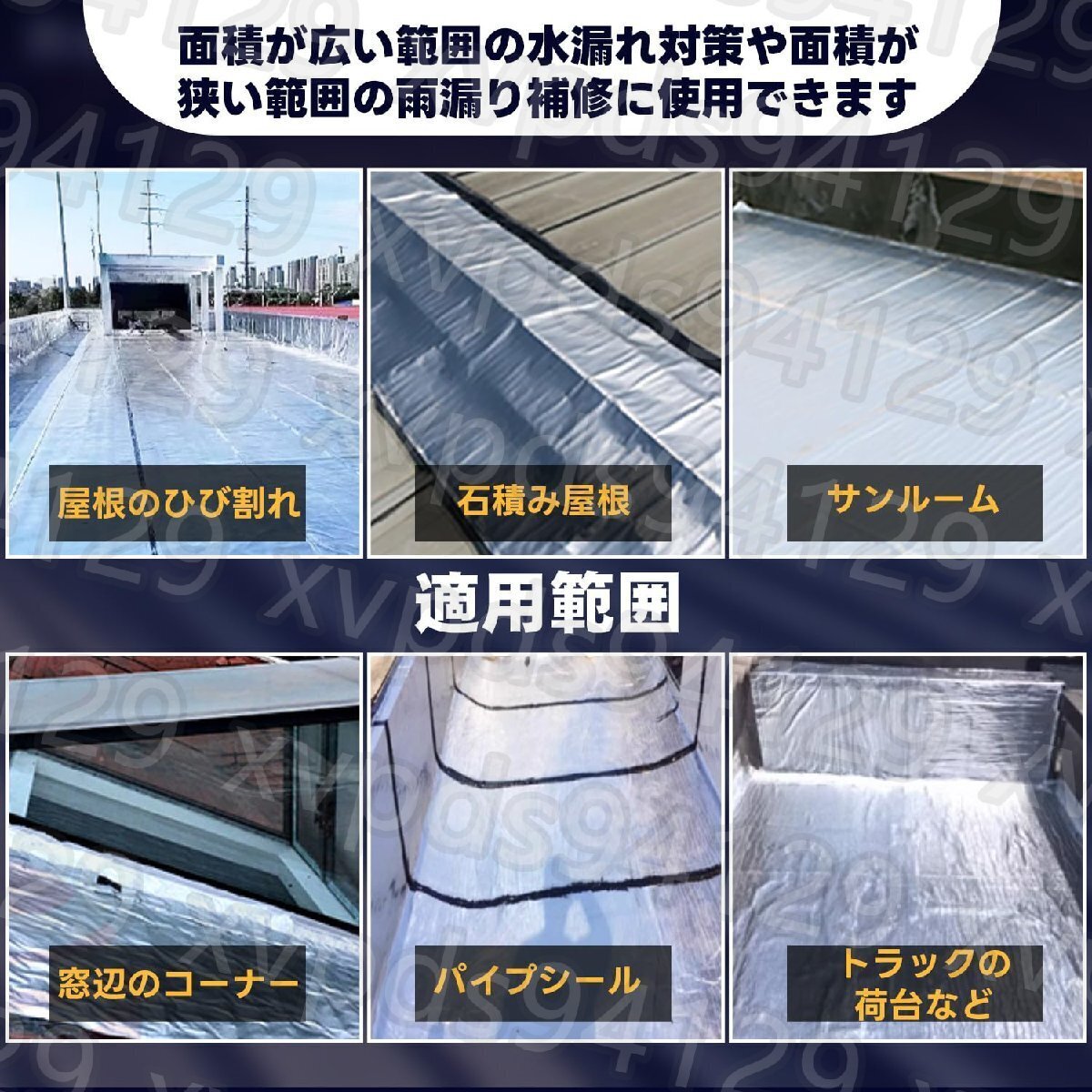 【多様なシーンに適用】根のひび割れ、石積み屋根、サンルーム、窓辺のコーナー、パイプシール、トラックの荷台など;屋根や室内の防水工事、建物のさまざまな隙間の漏水修復に最適です。※注意:瓦の上など、段差・隙間が存在し、施工としっかり接着できない場所で施工する際しては、製品の使用寿命に影響が生じる可能性がございます。また、時間の経過に伴い表面が酸化し、剥離することがございますので、予めご了承ください。