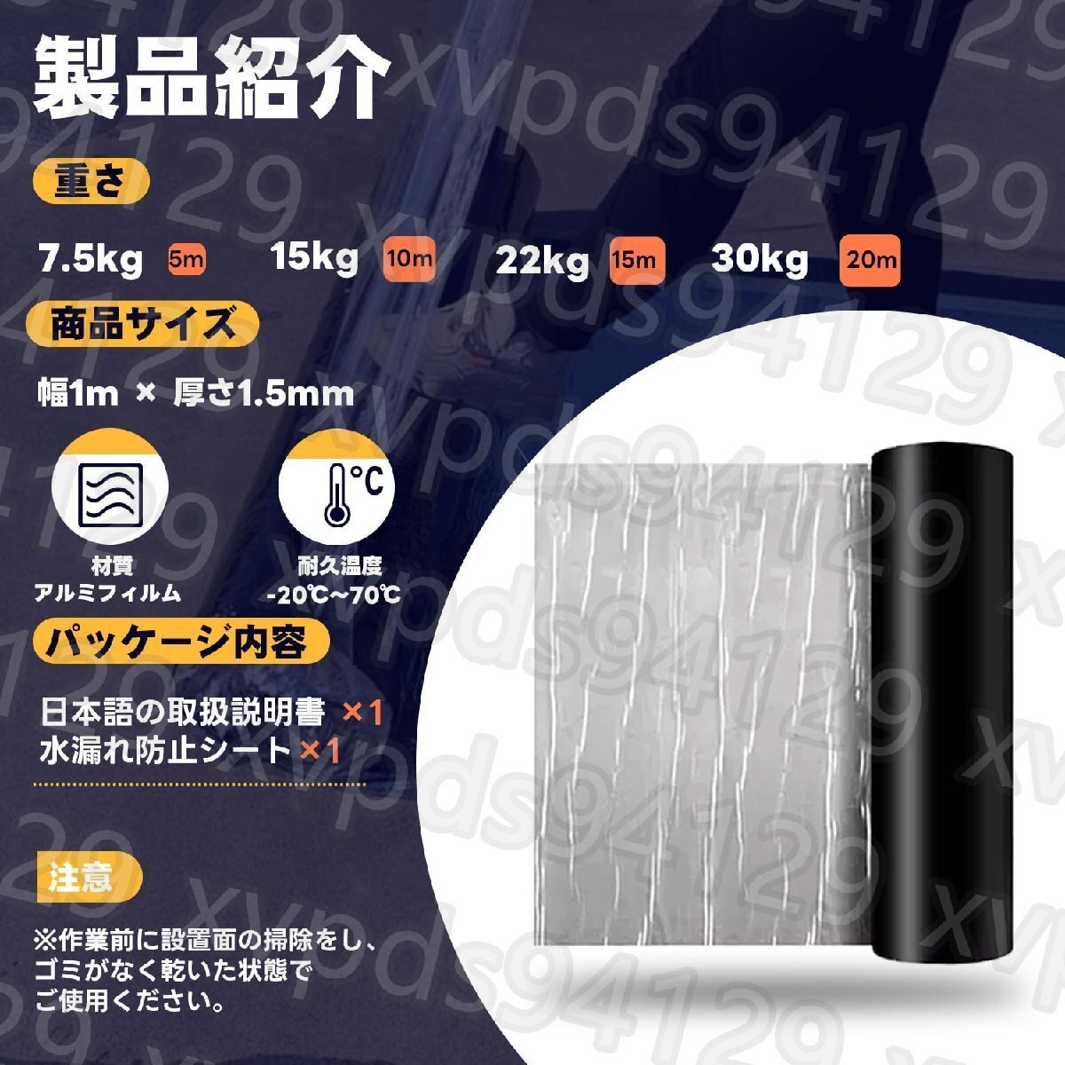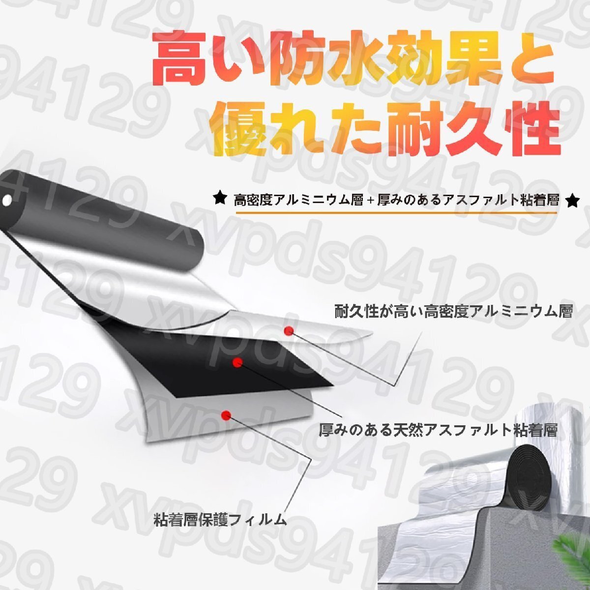 【強力防水】高品質材料使用しています。アルミフィルムの防水性、防漏性、断熱性に優れています。貼りつけると、優れたアスファルトが下地の内部に浸透し、小さな穴をふさぎ、強力な防水効果を発揮します。高い反射率を持つ厚いアルミフィルムは、優れた耐熱性と耐久性を持ち、使用寿命を大幅に延ばします。