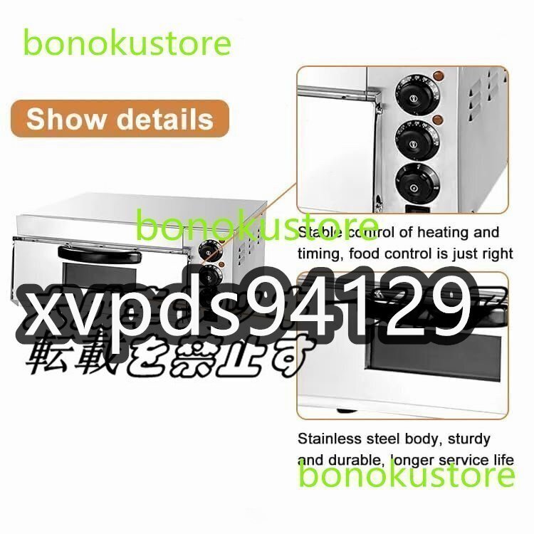 >>> 特徴:- 高品質のステンレス鋼製で、耐腐食性と耐久性に優れ、内タンクには耐油コーティングが施されており、お手入れが簡単です。- のぞき窓と防爆ライトを備えた設計で、調理中に食品の焼成プロセスを一目で確認できます。- 温度は50?350℃(120?660?)に調整でき、時間は10?60分に設定でき、さまざまな珍味を作ることができます。●機体側面には熱を効果的に放散する通気孔があり、オーブンには断熱ハンドルが付いています。ドアを簡単に開けやすくします。- 1台の機械は多目的で、ピザ、パン、ケーキ、バーベキュー、ビスケット、ペストリー、その他の珍味を作るのに使用できます。>>> 仕様:本体材質:ステンレス単層電力: 2000W単層ライナーのサイズ: 46*40*27cm温度調整範囲: 50℃-350℃/120?-622?温度制御時間:10?60分>>> パッケージリスト:1×ピザ電気オーブン