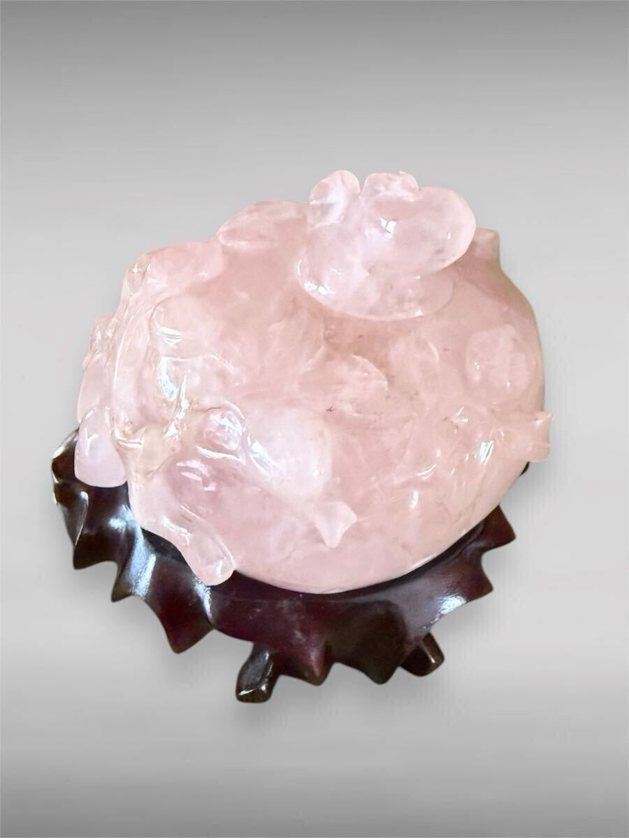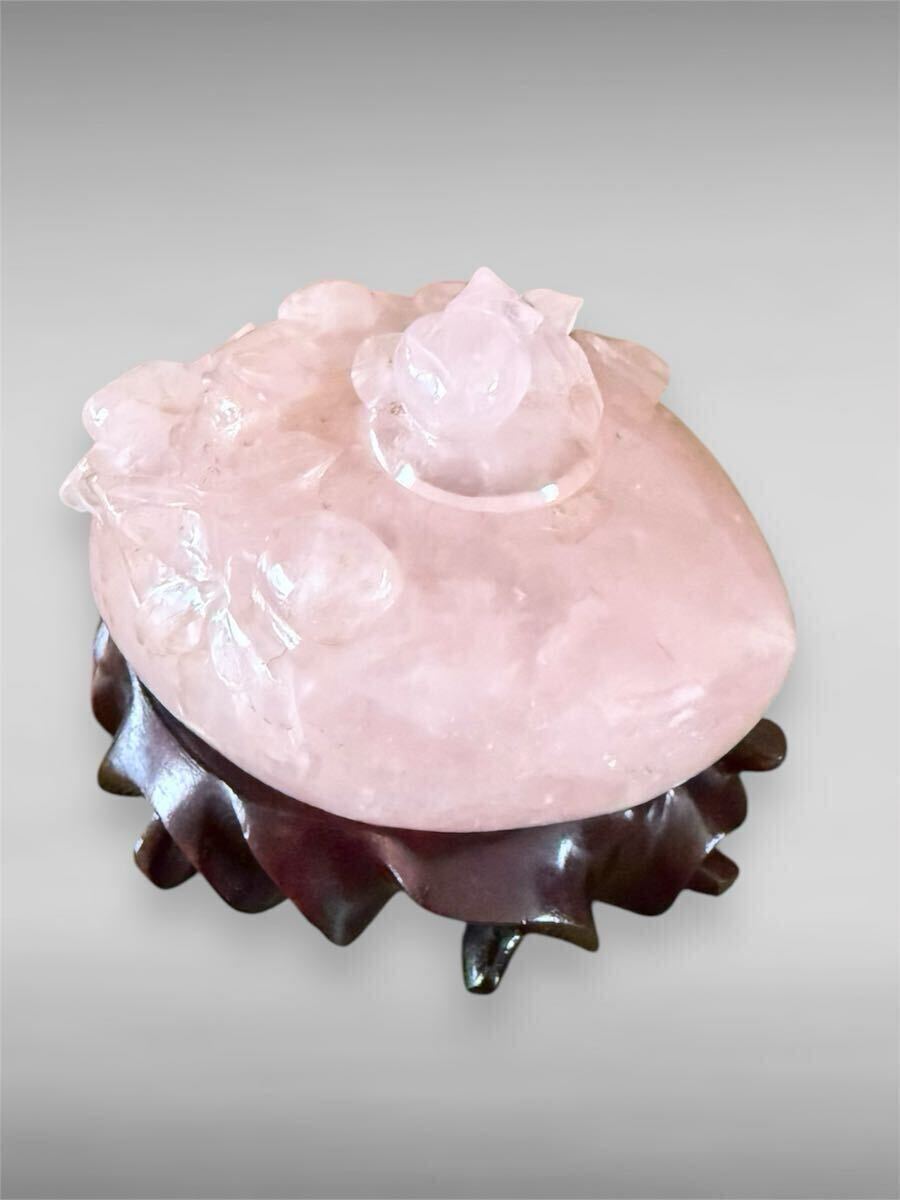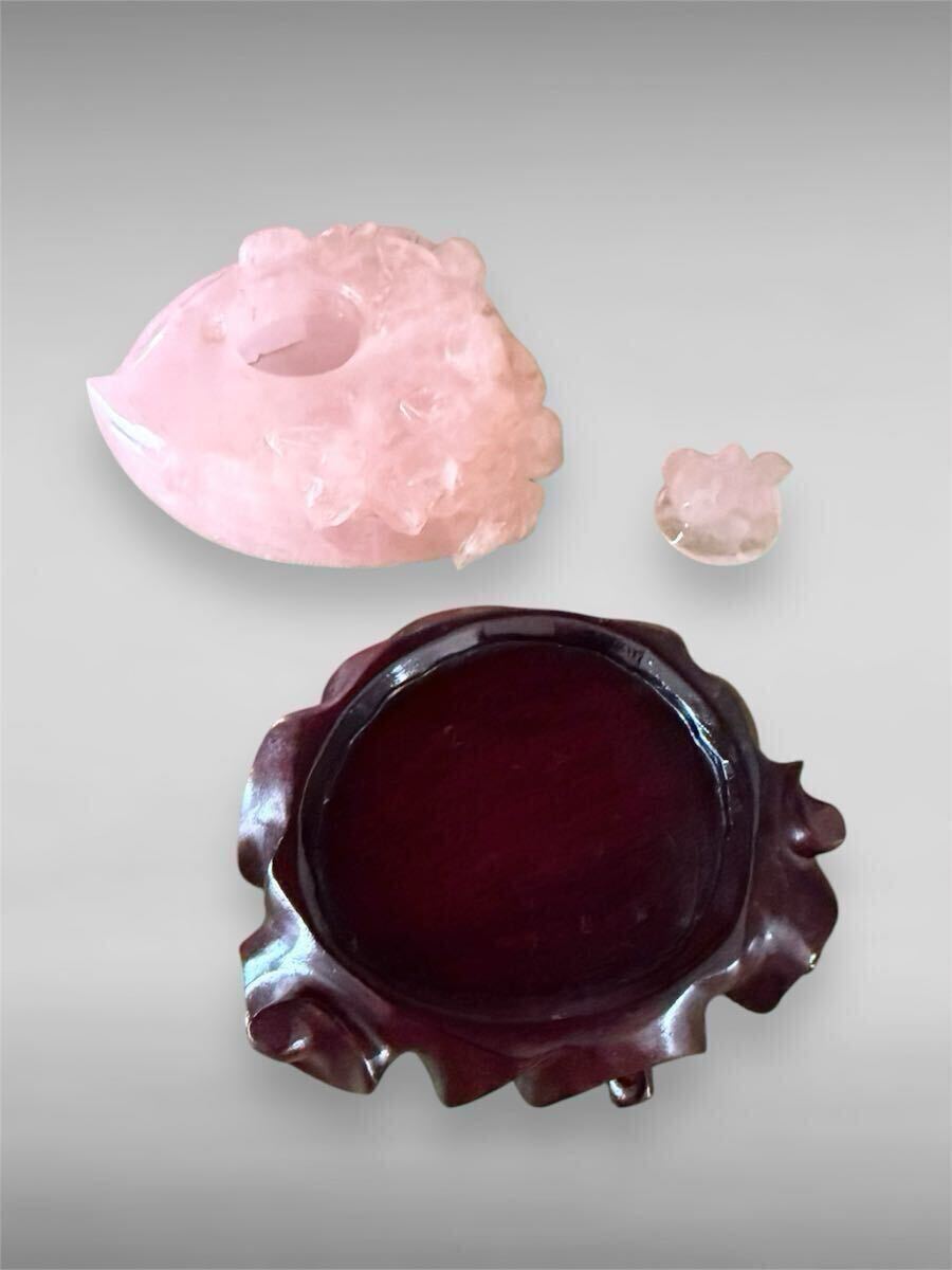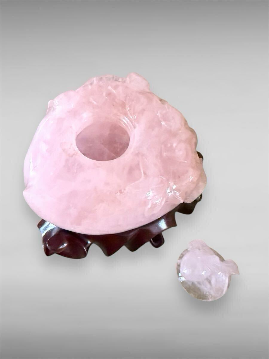 希少な、ローズクォーツ 紅水晶 香炉 天然石 石細工 木製飾台付きを出品させて頂きます。