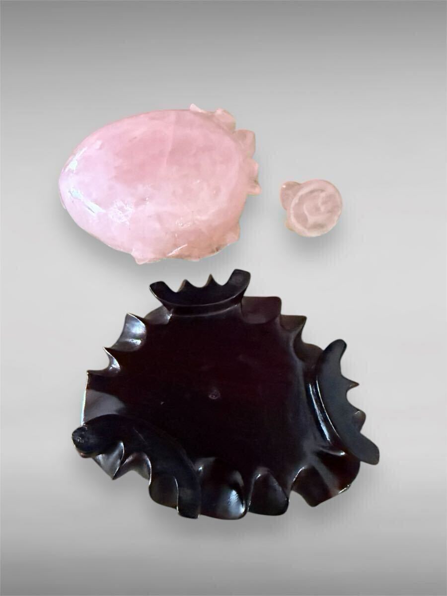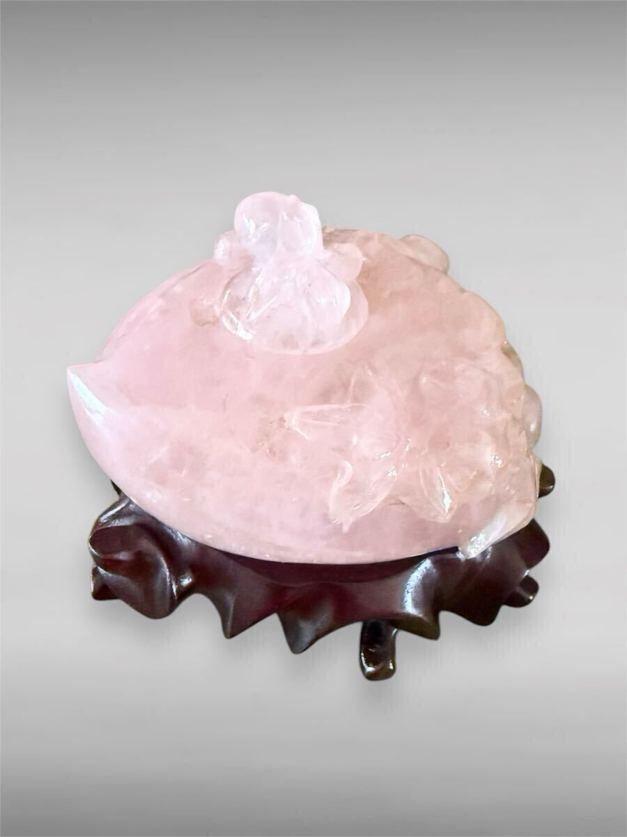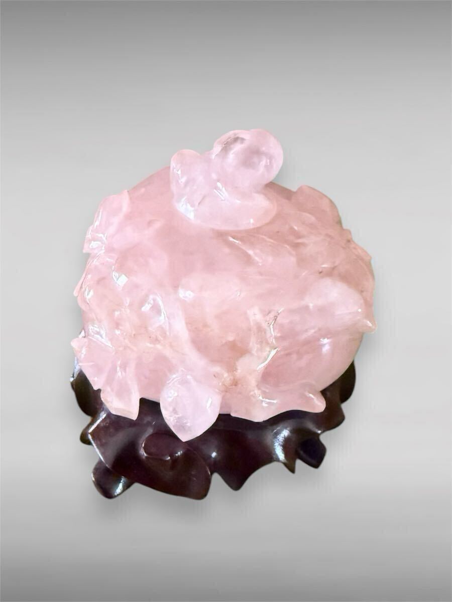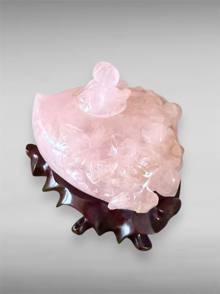 希少な、ローズクォーツ 紅水晶 香炉 天然石 石細工 木製飾台付きを出品させて頂きます。