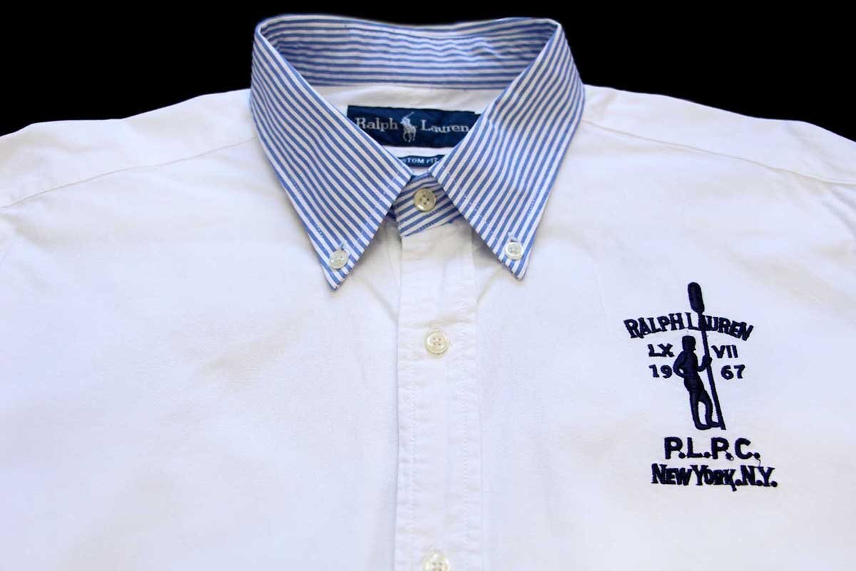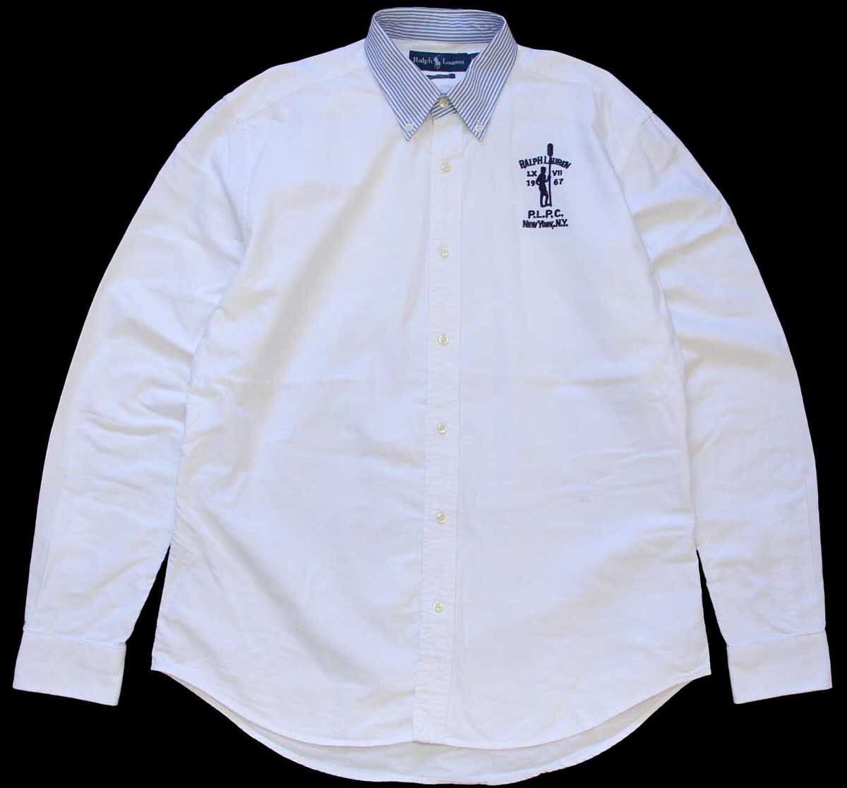 ★00s ラルフローレン P.L.P.C. NEW YORK 刺繍 ボタンダウン オックスフォード コットンシャツ 白 L★オールド ストライプ ホワイト