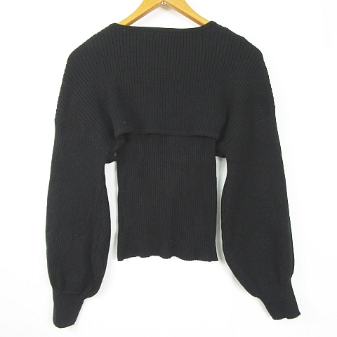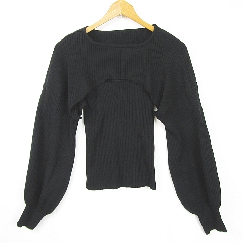 フーズフーチコ who's who Chico アンサンブルニット リブ ニット カットソー 長袖 ノースリーブ コットン F ブラック kz11286 レディース